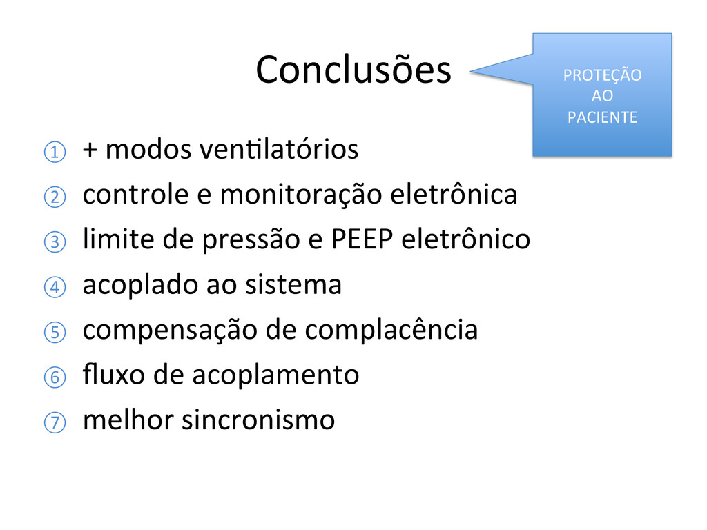 monitoração eletrônica ③ limite de pressão e PEEP eletrônico ④ acoplado ao sistema ⑤ compensação de complacência ⑥ fluxo de acoplamento ⑦ melhor sincronismo PROTEÇÃO AO PACIENTE