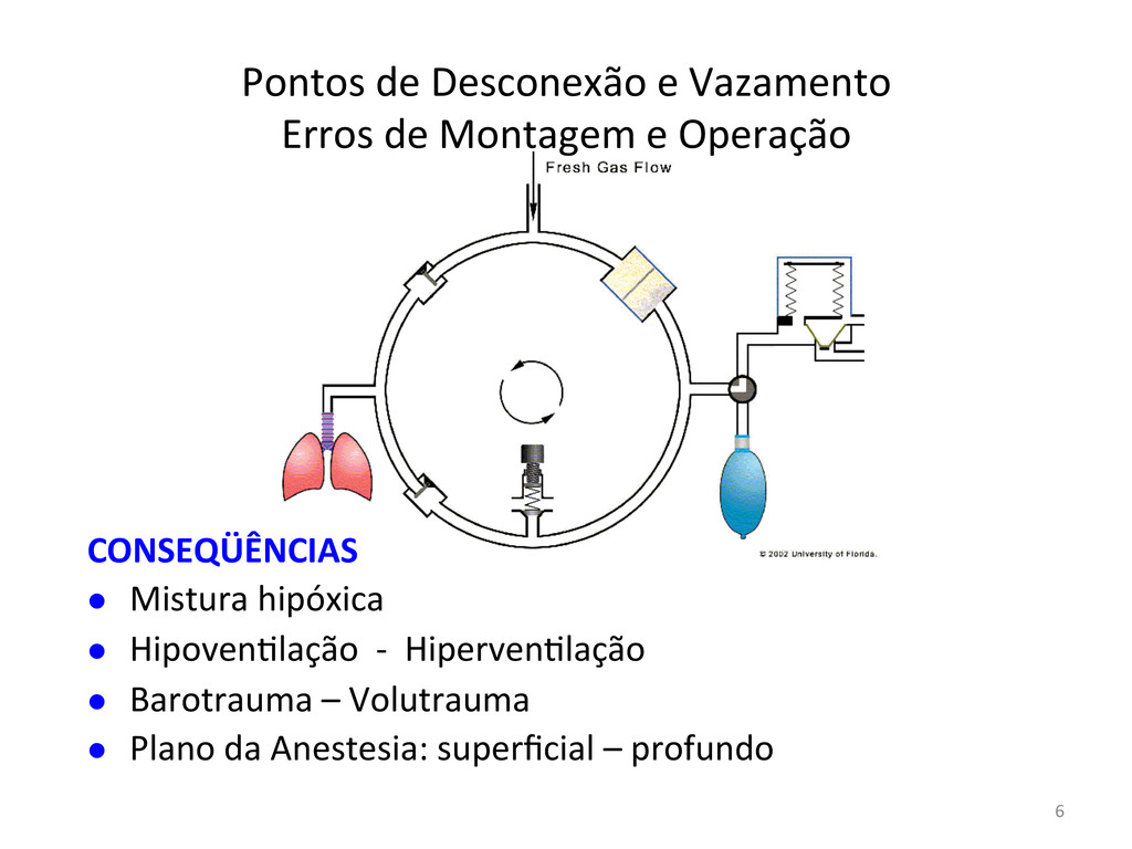 Montagem e Operação CONSEQÜÊNCIAS l Mistura hipóxica l Hipoven<lação -‐ Hiperven<lação l Barotrauma – Volutrauma l Plano da Anestesia: superficial – profundo