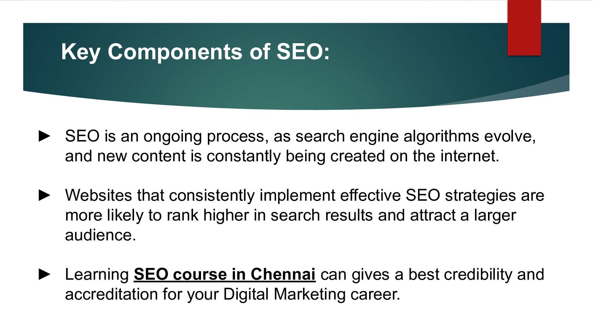 Always Changing. It's important to stay updated on industry news, algorithm changes, and emerging technologies to adapt your SEO strategy accordingly. ► Artificial Intelligence (AI) and Machine Learning (ML) ► User Experience (UX) Signals ► Content Quality and Relevance ► E-A-T (Expertise, Authoritativeness, Trustworthiness) ► E-E-A-T ► Core Web Vitals ► Mobile friendliness
