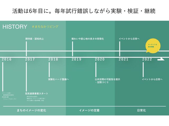 ظɾೝ্ ࣮ݧΛϋʔυඋ Θ͍ډ৺ͷྑ͞ͷৗଶԽ ެڞۭؒͷՄೳੑΛఏࣔ ɾۭؒͮ͘Γ ɹ Πϕϯτ͔Βৗ Πϕϯτ͔Βৗ ·ͪͷΠϝʔδͷมԽ Πϝʔδͷఆண ৗԽ ˌ·ͪͳ͔ϦϏϯά Ϛʔέοτ ຖ։࠵ ׆ಈʹɻຖࢼߦࡨޡ͠ͳ͕Β࣮ݧɾݕূɾܧଓ