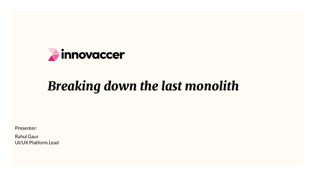 In this talk, speaker Rahul Gaur describes his team's experiences, their learnings and the challenges they encountered while breaking down Innovaccer's front-end monolith and running it in production.