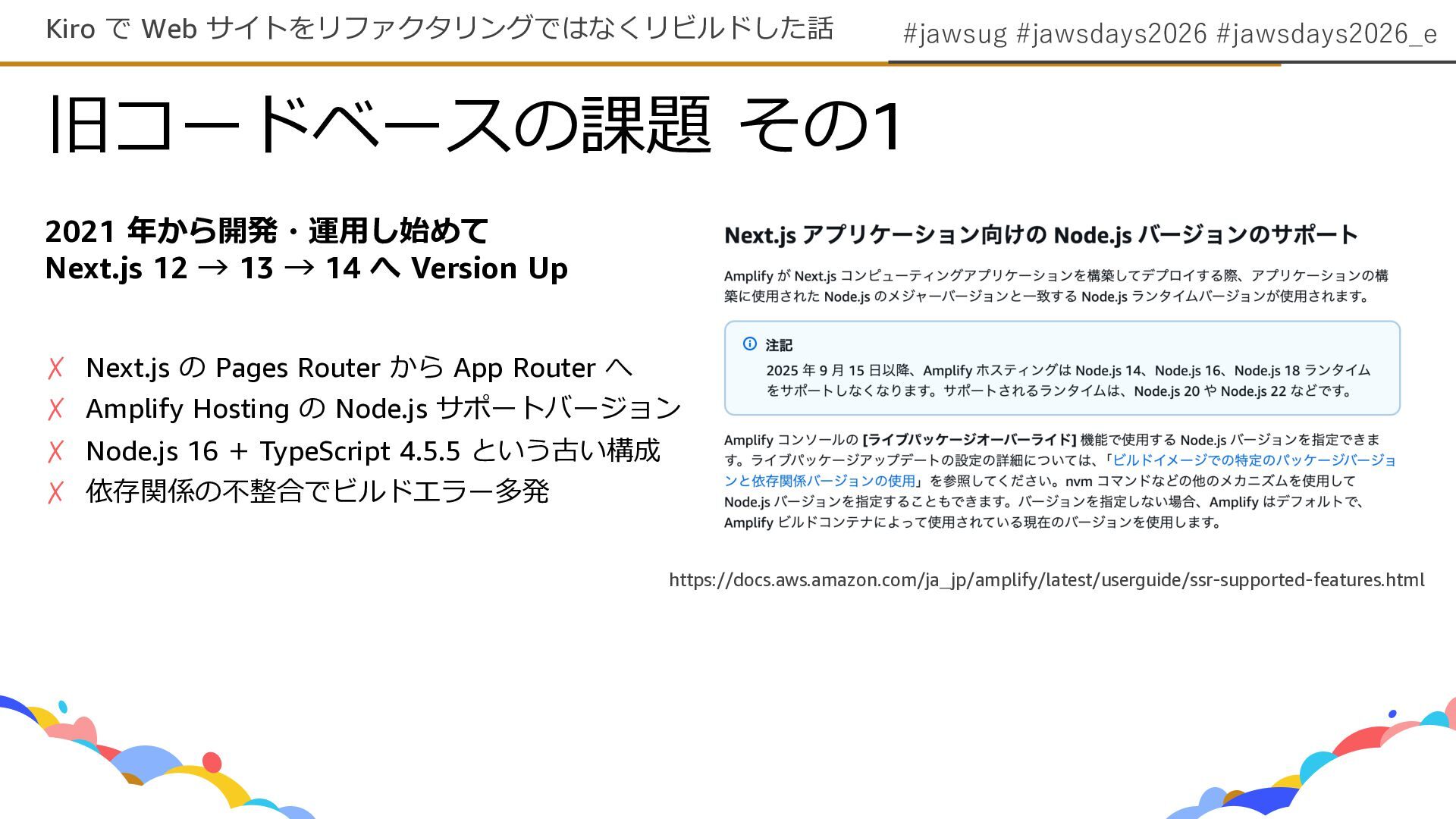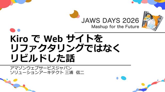 #jawsug #jawsdays2026 #jawsdays2026_e 旧コードベースの課題 その1 Kiro で Web サイトをリファクタリングではなくリビルドした話 2021