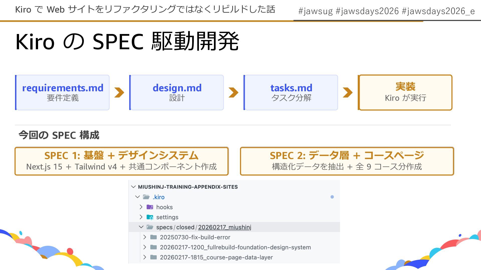 #jawsug #jawsdays2026 #jawsdays2026_e Kiro の SPEC 駆動開発 Kiro で Web
