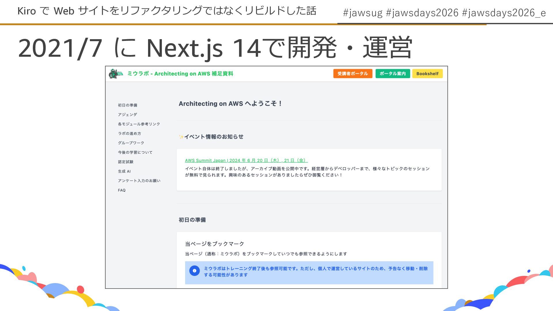 #jawsug #jawsdays2026 #jawsdays2026_e Kiro で Web サイトをリファクタリングではなくリビルドした話 2021/7 に Next.js