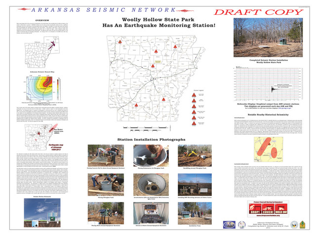 § ¨ ¦ 40 § ¨ ¦ 40 § ¨ ¦ 30 § ¨ ¦ 30 § ¨ ¦ 540 § ¨ ¦ 40 § ¨ ¦ 440 § ¨ ¦ 430 § ¨ ¦ 30 § ¨ ¦ 530 § ¨ ¦ 540 § ¨ ¦ 40 § ¨ ¦ 30 £ ¤ 64 £ ¤ 62 £ ¤ 412 £ ¤ 65 £ ¤ 49 £ ¤ 67 £ ¤ 71 £ ¤ 64 £ ¤ 67 £ ¤ 67 £ ¤ 49 £ ¤ 49B £ ¤ 79B £ ¤ 79 £ ¤ 63 £ ¤ 165 £ ¤ 70 £ ¤ 270 £ ¤ 270 £ ¤ 71 £ ¤ 70 £ ¤ 63 £ ¤ 79 £ ¤ 63 £ ¤ 79 £ ¤ 278 £ ¤ 167 £ ¤ 82S £ ¤ 165 £ ¤ 167 Rogers Gilmore Beebe Clinton Ozark Cherokee Village Harrison Batesville Grannis Walnut Ridge Warren Glenwood Mulberry Prescott Ashdown Stuttgart Piggott Brinkley Pocahontas McGehee De Queen Rosston Hazen Waldron Marked Tree Nashville Eureka Springs Bald Knob Dumas Sheridan Stamps Marianna Hamburg Huntsville Hampton Marshall Enola Lake Village Mount Ida Yell Polk Lee White Scott Pope Union Clark Drew Pike Clay Ashley Desha Benton Logan Saline Izard Miller Lonoke Newton Arkansas Cross Pulaski Grant Stone Perry Chicot Dallas Prairie Jefferson Sharp Searcy Phillips Madison Boone Sevier Poinsett Fulton Carroll Marion Garland Baxter Bradley Nevada Mississippi Monroe Greene Ouachita Washington Columbia Johnson Lincoln Jackson Howard Calhoun Faulkner Franklin Conway Craighead Randolph Van Buren Crawford Hempstead Woodruff Cleburne Montgomery Lawrence Cleveland Lafayette Crittenden St. Francis Hot Spring Independence Sebastian Little River Mena £ ¤ 63 £ ¤ 71 £ ¤ 165 £ ¤ 64 £ ¤ 371 £ ¤ 62 £ ¤ 63 £ ¤ 70 £ ¤ 61 £ ¤ 278 £ ¤ 167 £ ¤ 82 £ ¤ 79 £ ¤ 412 £ ¤ 65 £ ¤ 67 £ ¤ 270 £ ¤ 425 £ ¤ 79B £ ¤ 64B £ ¤ 271 £ ¤ 165 £ ¤ 82 £ ¤ 70 £ ¤ 49 £ ¤ 65 £ ¤ 412 £ ¤ 63 £ ¤ 71 £ ¤ 65 £ ¤ 425 £ ¤ 79 £ ¤ 65 £ ¤ 70 £ ¤ 63 £ ¤ 65 £ ¤ 371 £ ¤ 65 £ ¤ 278 £ ¤ 278 £ ¤ 278 £ ¤ 62 £ ¤ 82 £ ¤ 63 £ ¤ 62 £ ¤ 79 £ ¤ 49 £ ¤ 49 £ ¤ 79 £ ¤ 167 £ ¤ 270 £ ¤ 70 £ ¤ 71 £ ¤ 82 £ ¤ 63 £ ¤ 270 £ ¤ 371 £ ¤ 70 £ ¤ 64 £ ¤ 67 £ ¤ 71 £ ¤ 64 £ ¤ 79 £ ¤ 70 £ ¤ 71B £ ¤ 71 £ ¤ 65 £ ¤ 49 £ ¤ 64 £ ¤ 82 £ ¤ 62 £ ¤ 71B £ ¤ 79 £ ¤ 67 £ ¤ 70 £ ¤ 67 £ ¤ 82 £ ¤ 67 £ ¤ 62 £ ¤ 64 £ ¤ 62 £ ¤ 62 £ ¤ 371 £ ¤ 425 £ ¤ 412 £ ¤ 278 £ ¤ 167 £ ¤ 67 WHAR FCAR LCAR HHAR WLAR CCAR 20 0 20 40 60 80 100 10 Miles 20 0 20 40 60 80 100 10 Kilometers (N Woolly Hollow State Park Station Legend # * # * # * # * # * # * Cane Creek State Park (CCAR) Hobbs State Park (HHAR) Woolly Hollow State Park (WHAR) Ozark Folk Center State Park (FCAR) White Oak Lake State Park (WLAR) Lake Charles State Park (LCAR) Woolly Hollow State Park Has An Earthquake Monitoring Station! Arkansas Geological Survey Bekki White, Director and State Geologist Compilation by David H. Johnston and Jerry W. Clark 2013 A R K A N S A S S E I S M I C N E T W O R K Completed Seismic Station Installation Woolly Hollow State Park Station Installation Photographs Helicorder Display: Graphical output from ASN seismic stations Two displays are generated each day (AM and PM) Go to AGS Website to view near real-time displays: www.geology.ar.gov Arkansas Seismic Hazard Map Seismic Station Schematic Pouring Concrete Pad For Above-Ground Equipment Enclosure Placing Seismometer In Fiberglass Vault Placing Fiberglass Vault Placing Above-Ground Equipment Enclosure Accelerometer (left) and Seismometer With Protective Igloo Cover Interior of Above-Ground Equipment Enclosure Backfilling Around Fiberglass Vault Installing WiFi Receiving Antenna At Visitor Center Installation Team Fiberglass Vault 900 Mhz Antenna Solar Panels Seismic Sensors Above-Ground Equipment Enclosure Notable Nearby Historical Seismicity OVERVIEW Enola Earthquake Swarm When numerous earthquakes occur in a localized area over a short period of time, it is typically referred to as an earthquake swarm. Earthquake swarms with measurable events have occurred periodically in Arkansas over the last forty years. One of the most notable is the Enola Swarm that occurred in central Faulkner County during the early 1980’s and again in 2001. It is named for the small town of Enola because the individual event epicenters are mapped either within or in close proximity to this community. On January 12, 1982, an earthquake with a magnitude of 1.2 was recorded near Enola. This earthquake is considered to mark the beginning of the Enola Swarm. It is reported that more than 40,000 seismic events have been instrumentally recorded in the general vicinity of Enola since 1982. Since the felt threshold for earthquakes is generally around a magnitude of 2.5 or greater and a majority of the recorded events were less than 2.5 in magnitude, most of the events went unnoticed by those that live in the area. However, numerous felt events have also been reported including a 4.5 magnitude earthquake that was recorded on January 21, 1982, making it the largest seismic event in the Enola swarm area. On May 4, 2001, a magnitude 4.4 earthquake struck in the Enola area and was followed by numerous aftershocks, some of which measured greater than 2.0 in magnitude. Approximately 2,500 earthquakes were recorded in the Enola area in 2001. It’s reported that the Enola Swarm earthquakes resulted in no structural damage, although there have been reports of broken china near the epicenters of some of the larger events. The Enola Swarm seismicity is considered to have been naturally occurring and unrelated to the New Madrid seismic zone. When many people think of the occurrence of earthquakes in the United States, they invariably think of California, Alaska, or the western United States in general. HOWEVER, Arkansas also has had its share of earthquake activity and has a significant earthquake risk from an area known as the New Madrid seismic zone (NMSZ). The NMSZ is an active fault system that extends from around Marked Tree, Arkansas northward to near Cairo, Illinois. In the winter of 1811-1812, a series of at least three catastrophic earthquakes with estimated magnitudes greater than 7.5 rattled 
