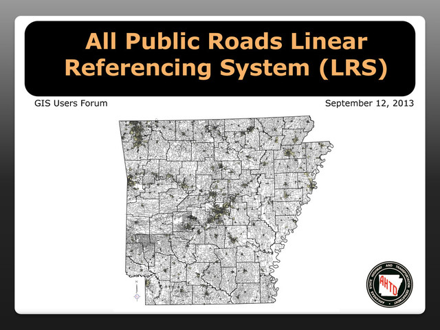 All State Transportation Departments are now required to have a Linear Referencing System (LRS) network for all public roads in their respective state. This presentation will explain the new requirement from the Federal Highway Administration (FHWA), discuss the work already accomplished on the LRS, the challenges and obstacles to meet the requirement and our plans to work closely with the Arkansas Geographic Information Office, other state agencies, counties and cities to complete the requirement. In addition, this presentation will highlight how an All Public Roads LRS will be useful at the national, state, county, city and community levels.