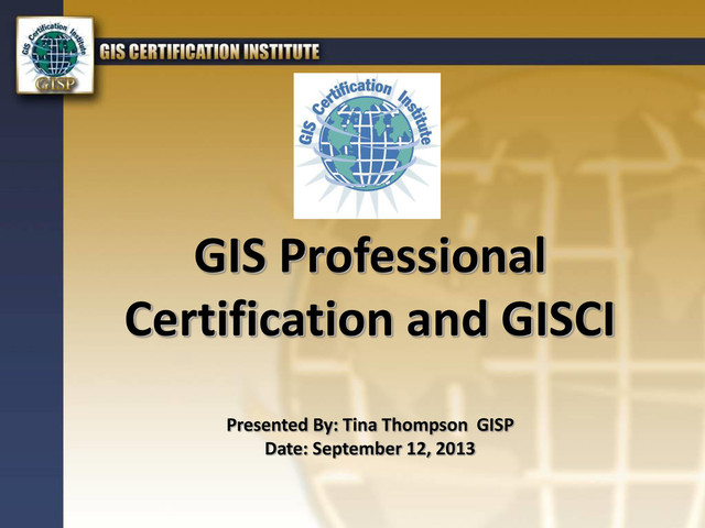 This presentation will describe the history and background of the GIS Certification Institute and its administration of the GIS Professional Certification Program. Emphasis will be given to the current state of the program and the creation and addition of an exam component by 2015