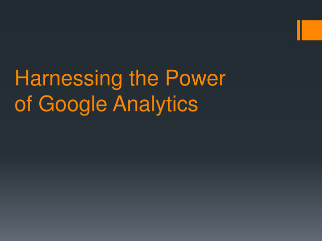 This presentation will be an overview of the usage of Google Analytics data within your web based products, and how that data can be used to fast track improvements to the web based service you provide. A detailed discussion on the implementation of the code into your site; and rundown of the types of traffic data obtained from visitors to your site. If time allows, there will also be discussion on the use of Google Maps and Earth to display your data to those users who still prefer using Google’s mapping products.