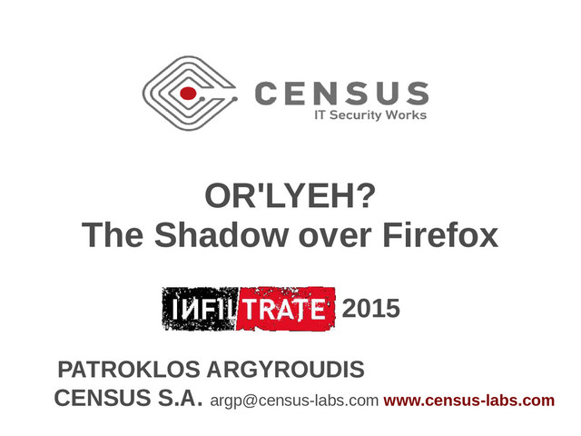 regions - 37 bins in Firefox: 2, 4, 8, 16, 32, …, 512, 1024, 2048 - > 2048: large and huge – not covered by this talk - Each bin is associated with several runs • Allocation requests are rounded up and assigned to a bin (size class) - Lookup for a run with a free region - If none found, a new run is allocated • Same-sized objects of different types contiguous in memory • LIFO: a free followed by GC and an allocation of the same size most likely ends up in the freed region • Free jemalloc regions are sanitized to mitigate uninitialized memory leaks