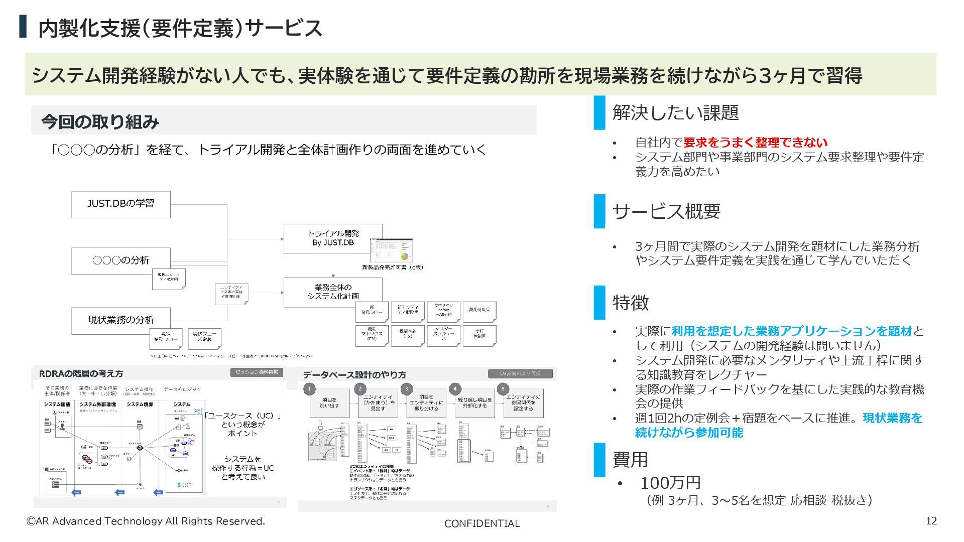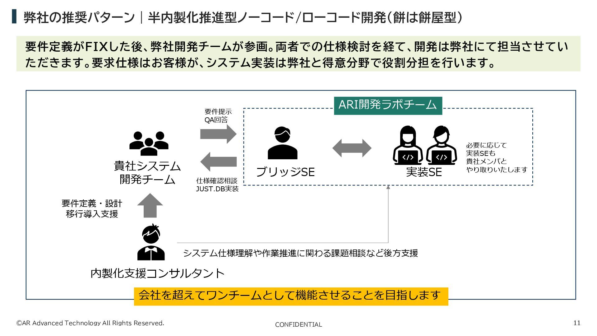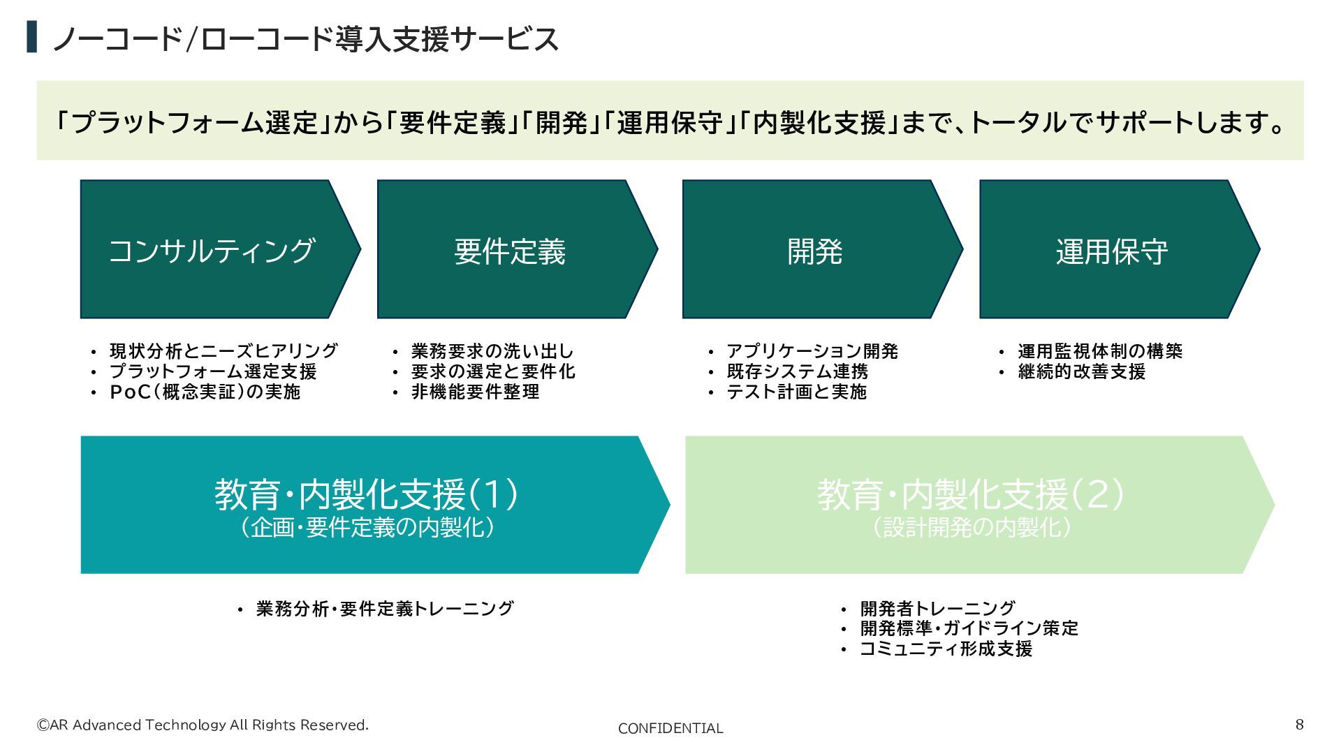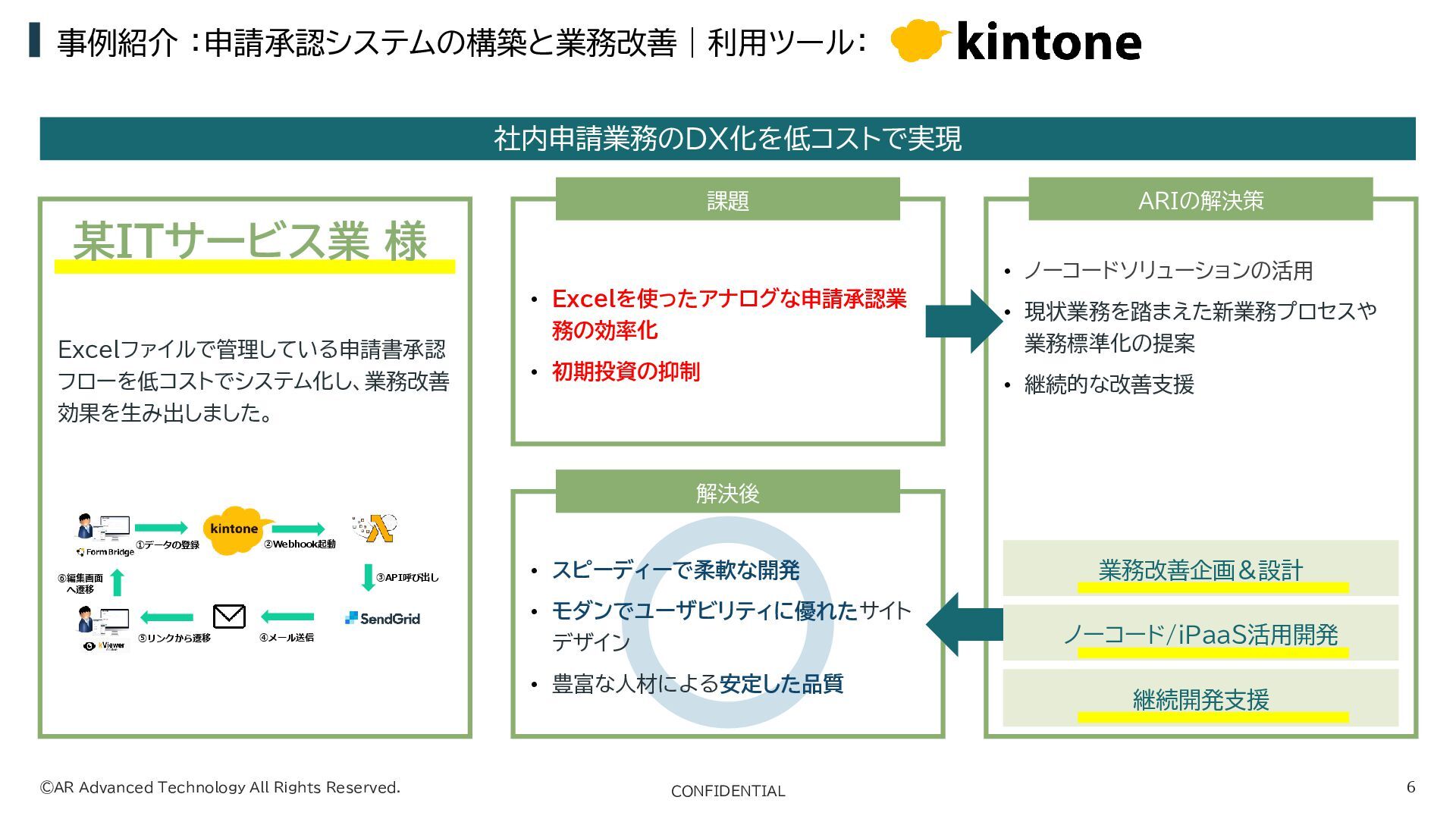 製品選定でお悩みの場合も是非ご相談ください。 ノーコード ローコード • 申請承認システム[ワークフロー](サービス業) • 営業支援&案件管理システム[SFA](SIer) • 製品企画設計情報管理システム[PLM](製造業) • 稟議書の電子化対応[ワークフロー](商社) • 債権管理システム(社会インフラ) • 設備管理システム(製造業) • 申請管理システム(製造業) • システム構成管理ポータル(製造業) • 管理会計システム(商社) 製品/プラットフォーム 弊社での主な実績 ※こちらにないソリューションに関しても対応可能な場合があります。遠慮なくご相談ください。 特徴(弊社見解) サイボウズ提供のクラウド型業務ア プリ作成プラットフォーム。TV-CM の効果もあり利用企業多い。 ジャストシステム社のデータベース 管理システム。同時ログイン者数ラ イセンスなど独自の特徴あり。 エンタープライズ向け統合型ロー コードプラットフォーム。ワークフ ローに強い。 (サイボウズ) (ジャストシステム) (エヌ・ティ・ティ・データイントラマート) PLM製品であるTeamcenter、 SAP、Salesforceなどエンタープ ライズ製品との連携に強み。 (シーメンス) (マイクロソフト) ローコード開発ツール群で、アプリ 作成、ワークフロー自動化、データ 分析など広範に対応可能。