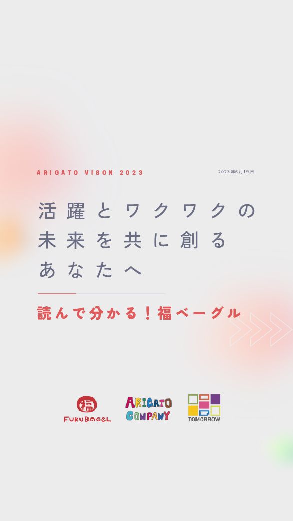 式 会 社 代 表 者 福 島 直 本 社 〒 3 7 0 - 0 8 5 2 群 馬 県 高 崎 市 中 居 町 1 - 7 - 4 創 業 2 0 1 1 年 8 月 8 日 従 業 員 数 9 0 人 ( 2 0 2 3 年 8 月 現 在 ) 売 上 高 5 億 円 ( 2 0 2 4 年 3 月 期 見 込 ) 事 業 所 ▪ 本 社 / 群 馬 県 高 崎 市 中 居 町 1 - 7 - 4 ▪ 高 崎 店 / 群 馬 県 高 崎 市 中 居 町 1 - 7 - 4 ▪ モ ン ト レ ー 店 / 群 馬 県 高 崎 市 八 島 町 2 2 2 高 崎 モ ン ト レ 1 F ▪ 川 原 町 店 / 群 馬 県 前 橋 市 川 原 町 2 - 8 - 1 ▪ 伊 勢 崎 店 / 群 馬 県 伊 勢 崎 市 宮 子 町 3 4 1 9 - 3 ▪ 夕 や け だ ん だ ん 谷 中 銀 座 店 / 東 京 都 荒 川 区 西 日 暮 里 3 - 1 0 - 6 セ ・ ア ベ ー レ 谷 中 銀 座 E A S T 1 階 ▪ 上 野 毛 店 / 東 京 都 世 田 谷 区 上 野 毛 1 - 1 7 - 6 ▪ 福 ベ ー グ ル 工 房 ( 製 造 専 門 ) 関 連 企 業 A R I G A T O C O M P A N Y 株 式 会 社 T O M O R R O W C O M P A N Y 株 式 会 社 福 ベ ー グ ル に つ い て / 会 社 概 要