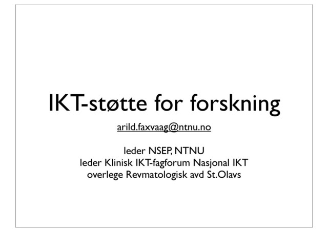 helse-it systemer bør støtte alle fasetter av kliniker-pasientmøtet, • pasientmøtet som et sted der kunnskap blir operasjonalisert, implementert, etterprøvd og videreutviklet • pasientmøtet som et sted der ferdigheter øves inn, brukes og etterprøves • pasientmøtet som et sted der teknologi blir brukt, validert, etterprøvd og videreutviklet • pasientmøtet som et sted der pasient og pårørende får ny innsikt og forståelse