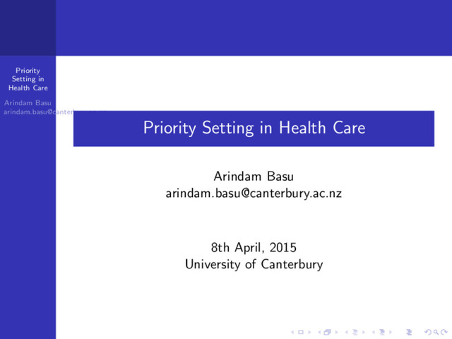 We Cover today? Start with a Case Study Examine Issues with Priority Setting in Health Care Learn Aspects of how priority setting exercises are done Discuss how to evaluate whether the priority setting was done well