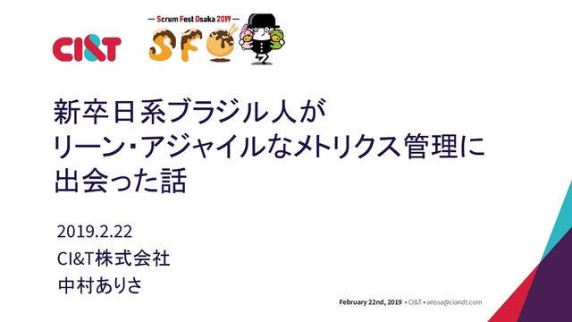 新卒日系ブラジル人が リーン・アジャイルなメトリクス管理に 出会った話 February 22nd, 2019 • CI&T •