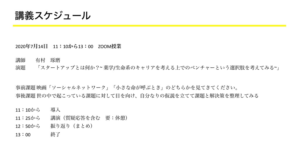 ߨٛεέδϡʔϧ 20207݄14ɹ11ɿ10͔Β13ɿ00ɹZOOMतۀ ߨࢣɹɹ༗ଜɹୖຏ ԋɹɹʮελʔτΞοϓͱԿ͔ʁ~ ༀֶ/ੜ໋ܥͷΩϟϦΞΛߟ͑Δ্Ͱͷϕϯνϟʔͱ͍͏બࢶΛߟ͑ͯΈΔ~ʯɹɹ ɹɹ ɹ ࣄલ՝ өըʮιʔγϟϧωοτϫʔΫʯʮখ͞ͳ໋͕ݺͿͱ͖ʯͷͲͪΒ͔Λݟ͖͍ͯͯͩ͘͞ɻ ࣄޙ՝