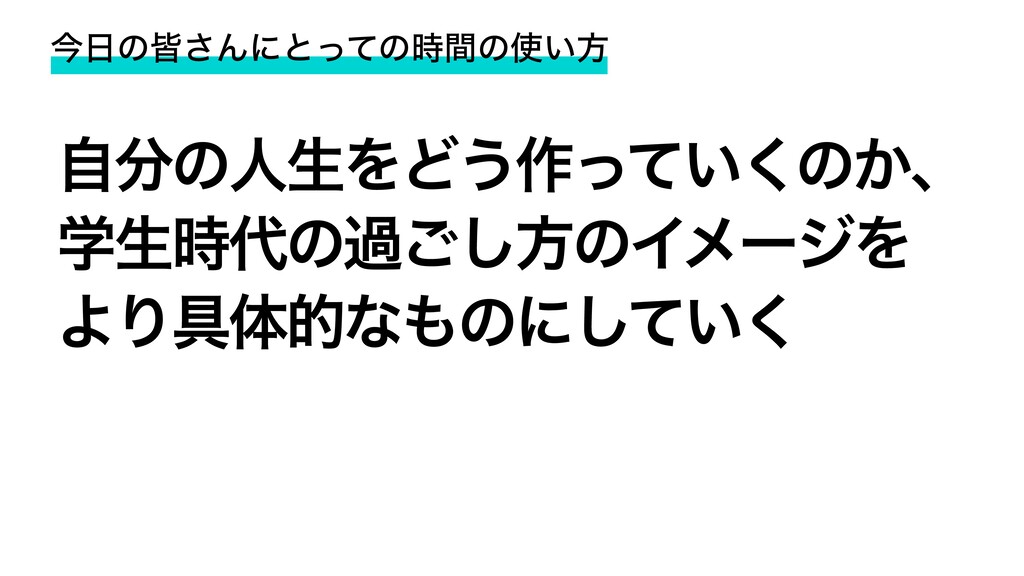ࠓͷօ͞Μʹͱͬͯͷ࣌ؒͷ͍ํ ࣗͷਓੜΛͲ͏࡞͍ͬͯ͘ͷ͔ɺ ֶੜ࣌ͷա͝͠ํͷΠϝʔδΛ ΑΓ۩ମతͳͷʹ͍ͯ͘͠