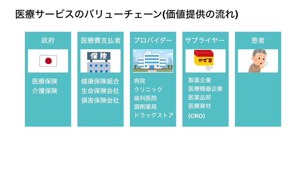 ҩྍαʔϏεͷόϦϡʔνΣʔϯ(ՁఏڙͷྲྀΕ) ҩྍඅࢧऀ ϓϩόΠμʔ αϓϥΠϠʔ ױऀ ݈߁อݥ߹ ੜ໋อݥձࣾ ଛอݥձࣾ පӃ