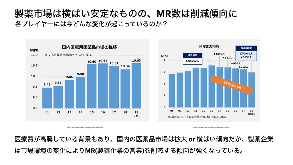 ༀࢢԣ͍҆ఆͳͷͷɺMRݮʹ ֤ϓϨΠϠʔʹࠓͲΜͳมԽ͕ى͍ͬͯ͜Δͷ͔ʁ https://answers.ten-navi.com/pharmanews/16843/ https://answers.ten-navi.com/pharmanews/17796/ ҩྍඅ͕ߴಅ͍ͯ͠Δഎܠ͋Γɺࠃͷҩༀࢢ֦େ or ԣ͍͕ͩɺༀاۀ ࢢڥͷมԽʹΑΓMR(ༀاۀͷӦۀ)Λݮ͢Δ͕ڧ͘ͳ͍ͬͯΔɻ