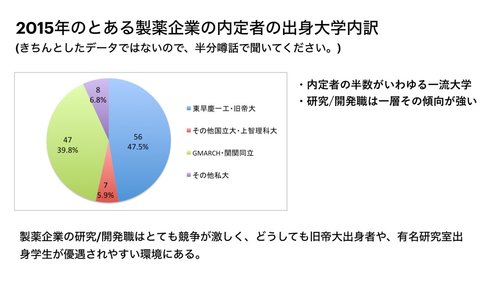 2015ͷͱ͋Δༀاۀͷఆऀͷग़େֶ༁ (͖ͪΜͱͨ͠σʔλͰͳ͍ͷͰɺᷚͰฉ͍͍ͯͩ͘͞ɻ) ༀاۀͷݚڀ/։ൃ৬ͱͯڝ૪͕ܹ͘͠ɺͲ͏ͯ͠چఇେग़ऀɺ༗໊ݚڀࣨग़ ֶੜ͕༏۰͞Ε͍͢ڥʹ͋Δɻ ɾఆऀͷ͕͍ΘΏΔҰྲྀେֶ ɾݚڀ։ൃ৬Ұͦͷ͕ڧ͍