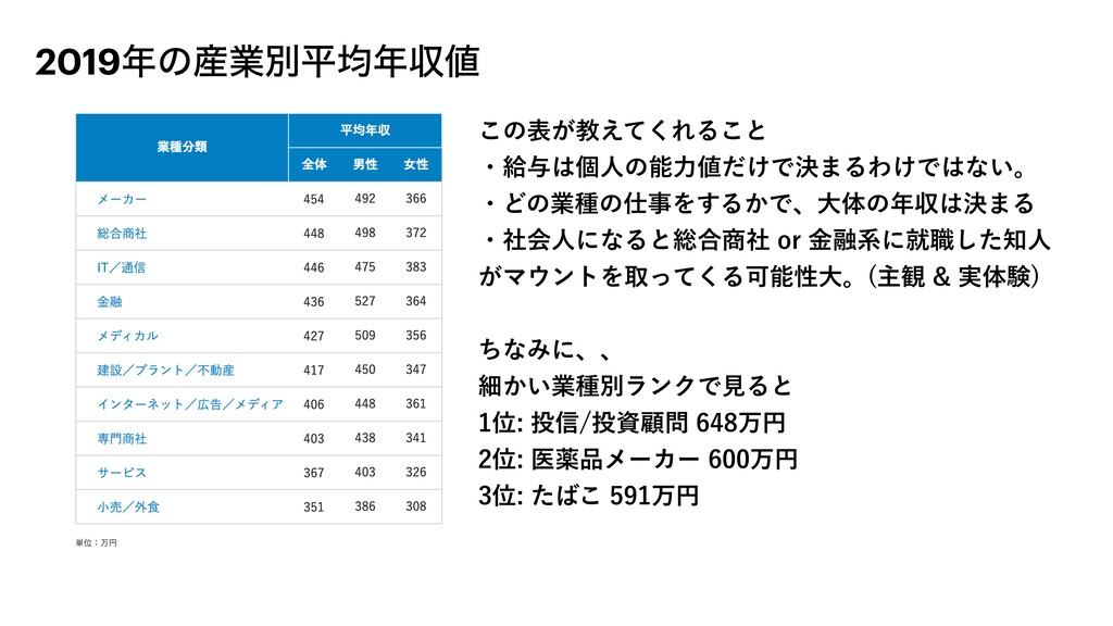 2019ͷ࢈ۀผฏۉऩ ͜ͷද͕ڭ͑ͯ͘ΕΔ͜ͱ ɾڅ༩ݸਓͷೳྗ͚ͩͰܾ·ΔΘ͚Ͱͳ͍ɻ ɾͲͷۀछͷࣄΛ͢Δ͔Ͱɺେମͷऩܾ·Δ ɾࣾձਓʹͳΔͱ૯߹ࣾPSۚ༥ܥʹब৬ͨ͠ਓ ͕ϚϯτΛऔͬͯ͘ΔՄೳੑେɻ ओ؍࣮ମݧ ͪͳΈʹɺɺ ࡉ͔͍ۀछผϥϯΫͰݟΔͱ