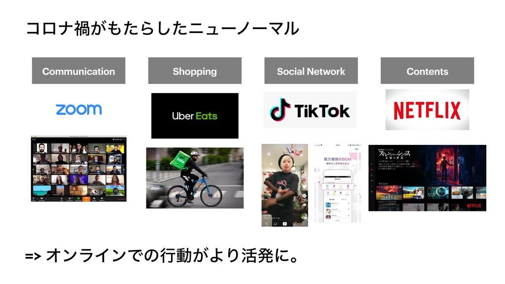 ίϩφՒ͕ͨΒͨ͠χϡʔϊʔϚϧ Communication Shopping Social Network Contents => ΦϯϥΠϯͰͷߦಈ͕ΑΓ׆ൃʹɻ