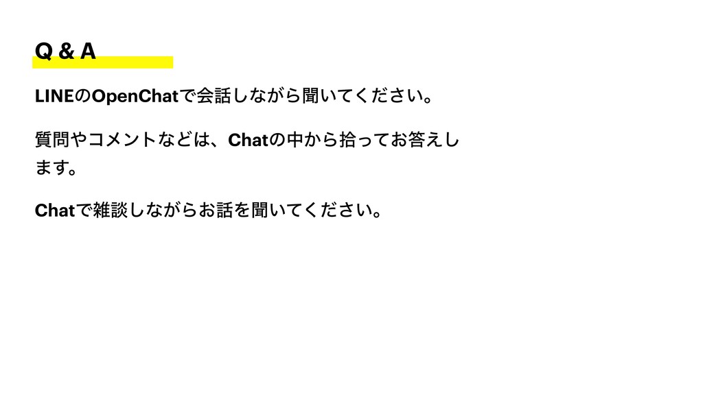 Q & A LINEͷOpenChatͰձ͠ͳ͕Βฉ͍͍ͯͩ͘͞ɻ ࣭ίϝϯτͳͲɺChatͷத͔Βर͓ͬͯ͑͠ ·͢ɻ ChatͰࡶஊ͠ͳ͕Β͓Λฉ͍͍ͯͩ͘͞ɻ