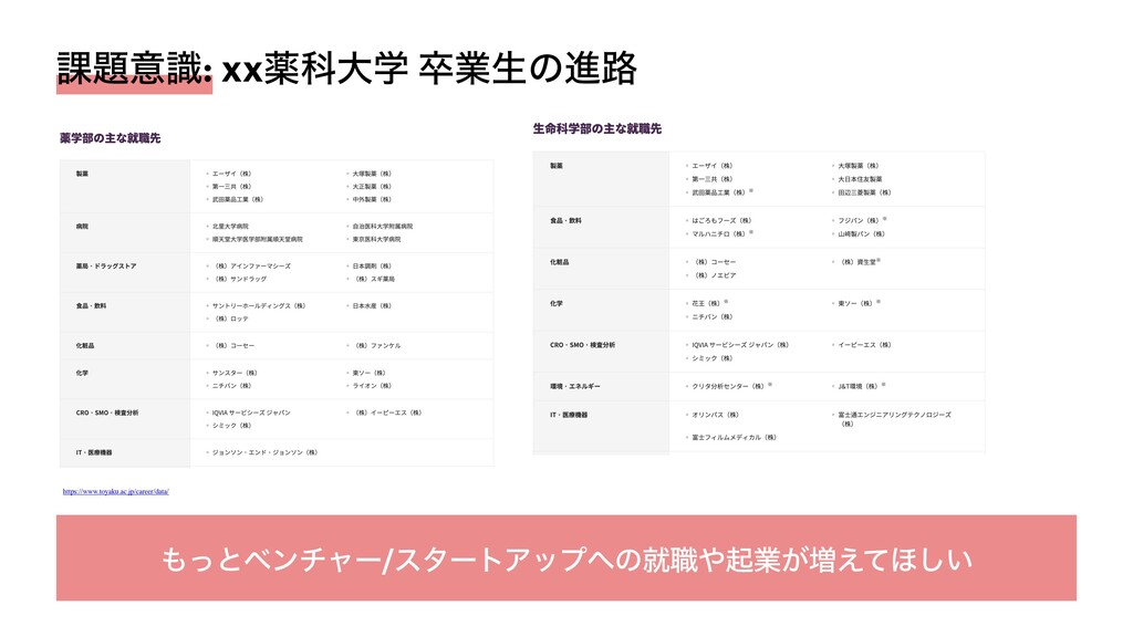 ՝ҙࣝ: xxༀՊେֶ ଔۀੜͷਐ࿏ https://www.toyaku.ac.jp/career/data/ ͬͱϕϯνϟʔ/ελʔτΞοϓͷब৬ىۀ͕૿͑ͯ΄͍͠