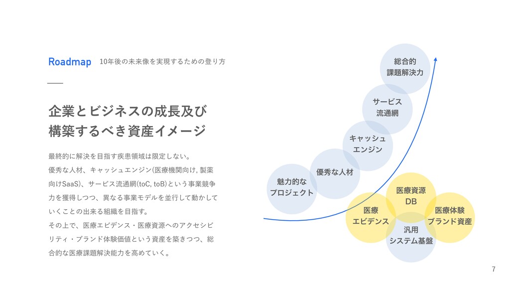 Roadmap ޙͷະདྷ૾Λ࣮ݱ͢ΔͨΊͷొΓํ اۀͱϏδωεͷٴͼ ߏங͢Δ͖ࢿ࢈Πϝʔδ ࠷ऴతʹղܾΛࢦ࣬͢ױྖҬݶఆ͠ͳ͍ɻ ༏लͳਓࡐɺΩϟογϡΤϯδϯ ҩྍػ͚ؔ ༀ ͚4BB4 ɺαʔϏεྲྀ௨