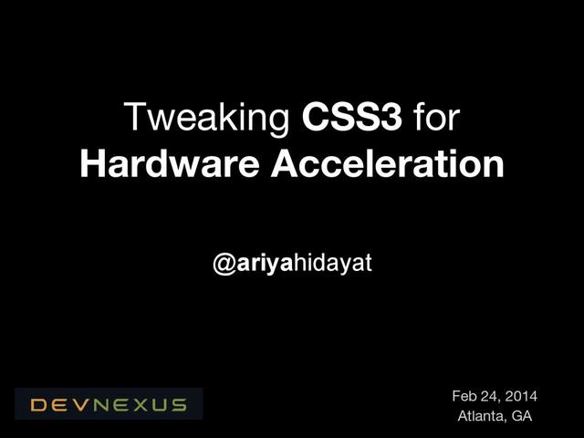 New CSS3 features such as animation, transition, and filters empower web designers to enrich the web pages with various types of interactivity and effects. Modern browsers, both on the desktop and mobile, are capable of rendering these CSS3 effects with the dedicated graphics processing unit (GPU) by using the compositing technique. There has been a lot of well-known CSS3 best practices, often centered around "use 3-d transform”. This talk sheds some more light on the browser interactions with the GPU and explain what happens behind the scenes, particularly for the objective of maximizing the synergy between the GPU and the CPU to have the most optimal CSS rendering performance.