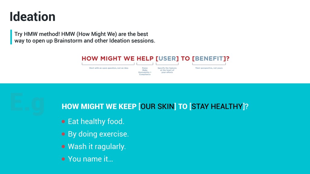 HEALTHY]? Eat healthy food. By doing exercise. Wash it ragularly. You name it… Try HMW method! HMW (How Might We) are the best way to open up Brainstorm and other Ideation sessions.