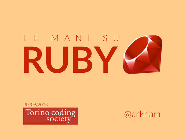 Il primo appuntamento del Torino Coding Society. Si parte con una introduzione a Ruby, al linguaggio e alla sua filosofia