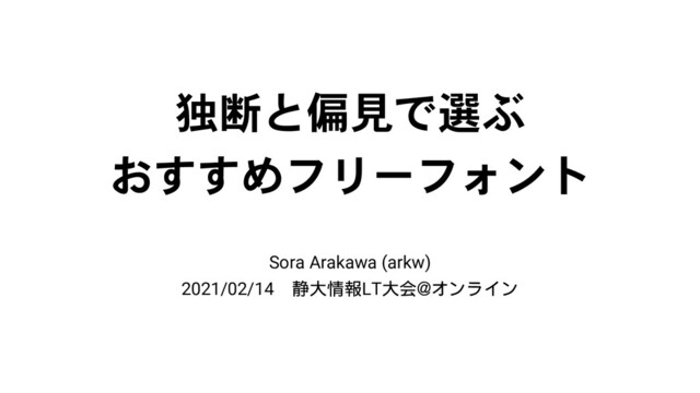 独断と偏見で選ぶ おすすめフリーフォント Sora Arakawa (arkw) 2021/02/14 静大情報LT大会@オンライン