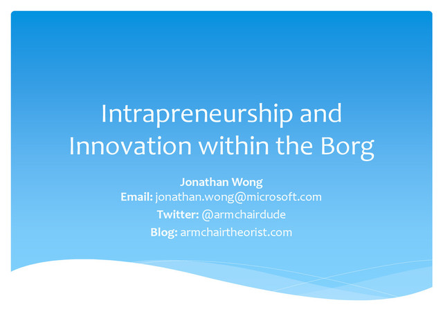 Presentation for National University of Singapore on intrapreneurship at Microsoft.