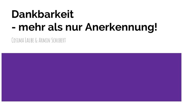 Zusammen mit Cosima Laube haben wir im Rahmen der Scrum User Group einen Vortrag gehalten, der die persönliche Geschichte, die Wissenschaft hinter der Dankbarkeit und einige in die Praxis übertragbare Methoden enthielt.