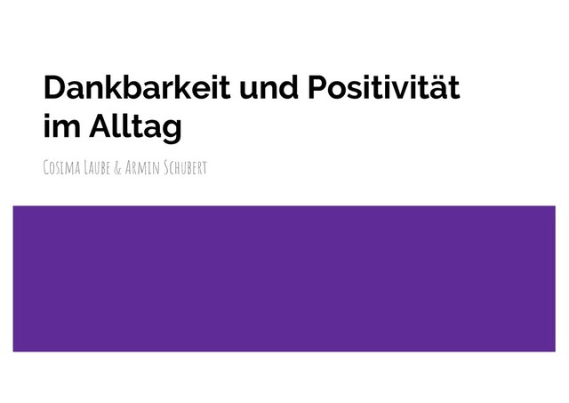 für die Praxis. • Fredrickson, Barbara L. (2009). Positivity. • Achor, Shawn (2011). The happiness advantage. • Tan, Chade-Meng (2015). Search inside yourself. • Gray, Dave (2016). Liminal thinking. • Empfehlenswerter Artikel zum Unterschied von blossem“positive thinking” und Positiver Psychologie: https://alcudina.de/die-tyrannei-des-positiven-denkens/ • Webseiten mit wissenschaftlichem Hintergrund: http://www.positive- psychologie.ch und https://www.dach-pp.eu/ • Rosenthal-/Pygmalion-Effekt: https://www.youtube.com/watch?v=rXriuRv1SU0 • ‘Bite Your Pencil’: https://www.psychologytoday.com/us/blog/insight-therapy/201010/action-creates-emotion