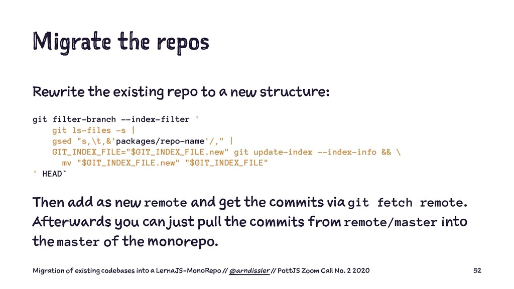 But is it as easy as it seems? I will show you with the help of a step-by-step-list for the migration of multiple repositories in a MonoRepo and which pitfalls you will reach during the migration.