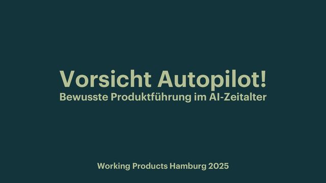 Diese Präsentation von der Working Products 2025 Konferenz in Hamburg beschäftigt sich mit der Frage, wie wir die Potenziale von AI in der Arbeit von Produktteams nutzen können, ohne der Versuchung zu erliegen, nicht mehr mitzudenken und "hinterm Steuerrad einzuschlafen".