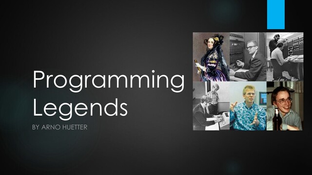a lasting influence on the software development profession, linked with an extraordinary personal story." • Technical brilliance is one thing, but it might also require being at the right place at the right time, finding a congenial partner or having recent innovations at one's disposal. • Most "top 10 influential / famous / rockstar programmer lists" have the usual suspects: • [1] Ritchie, Stroustrup, Gosling, Torvalds, Hejlsberg, Berners-Lee, Kernighan, Thompson, van Rossum, Knuth • [2] Ritchie, Torvalds, Stroustrup, Berners-Lee, Kernighan, Knuth, Thompson, van Rossum, Gosling, Gates • [3] Ritchie, Torvalds, Knuth, Thompson, Stroustrup, Berners-Lee, Kernighan, Gosling, Stallman, Lovelace • Alan Turing? Mathematician, cryptanalyst, specified electromechanical code- breaking devices, proposed universal computing machine. • Steve Wozniak? Great programmer, but his genius was in electronic engineering. • This small selection is based on a voting within a developer-only Facebook group plus one author choice (Ritchie/Thompson).