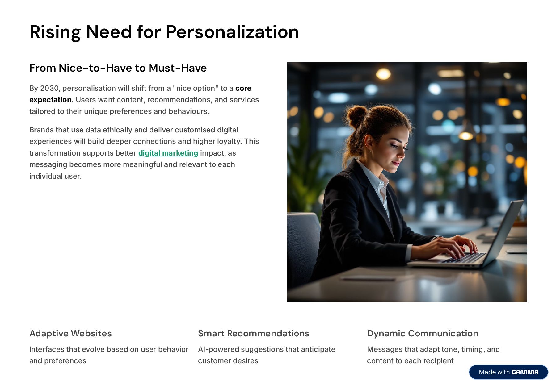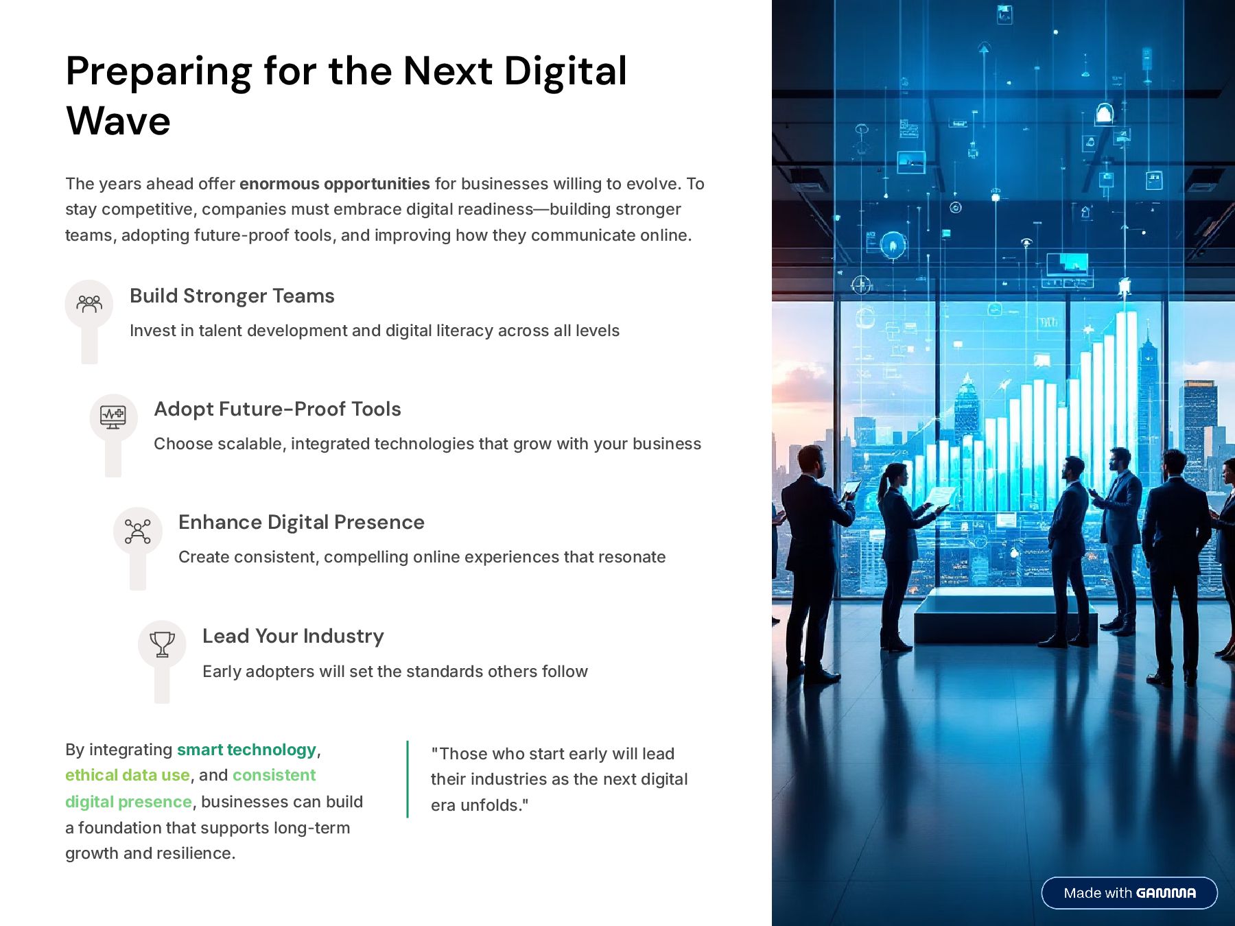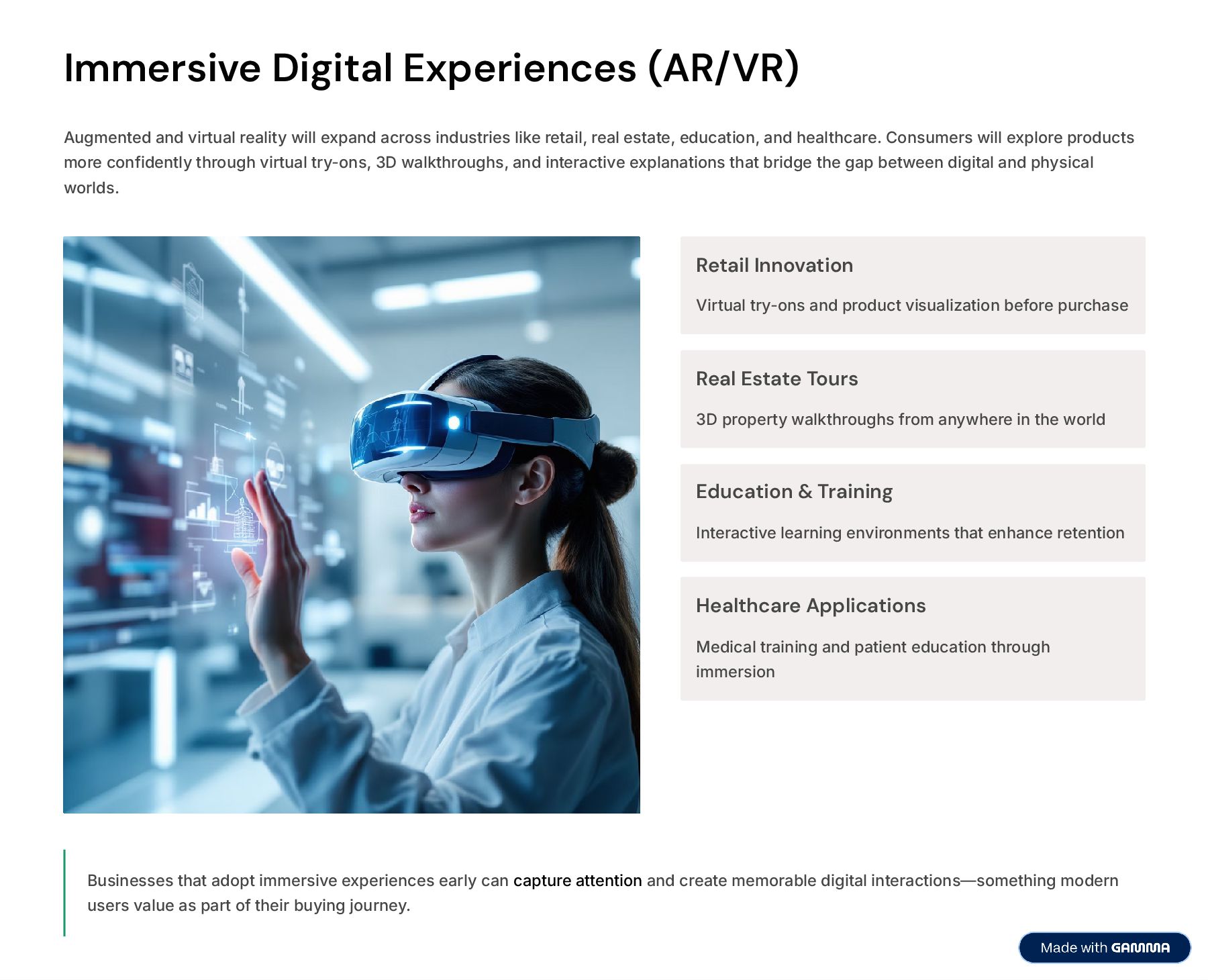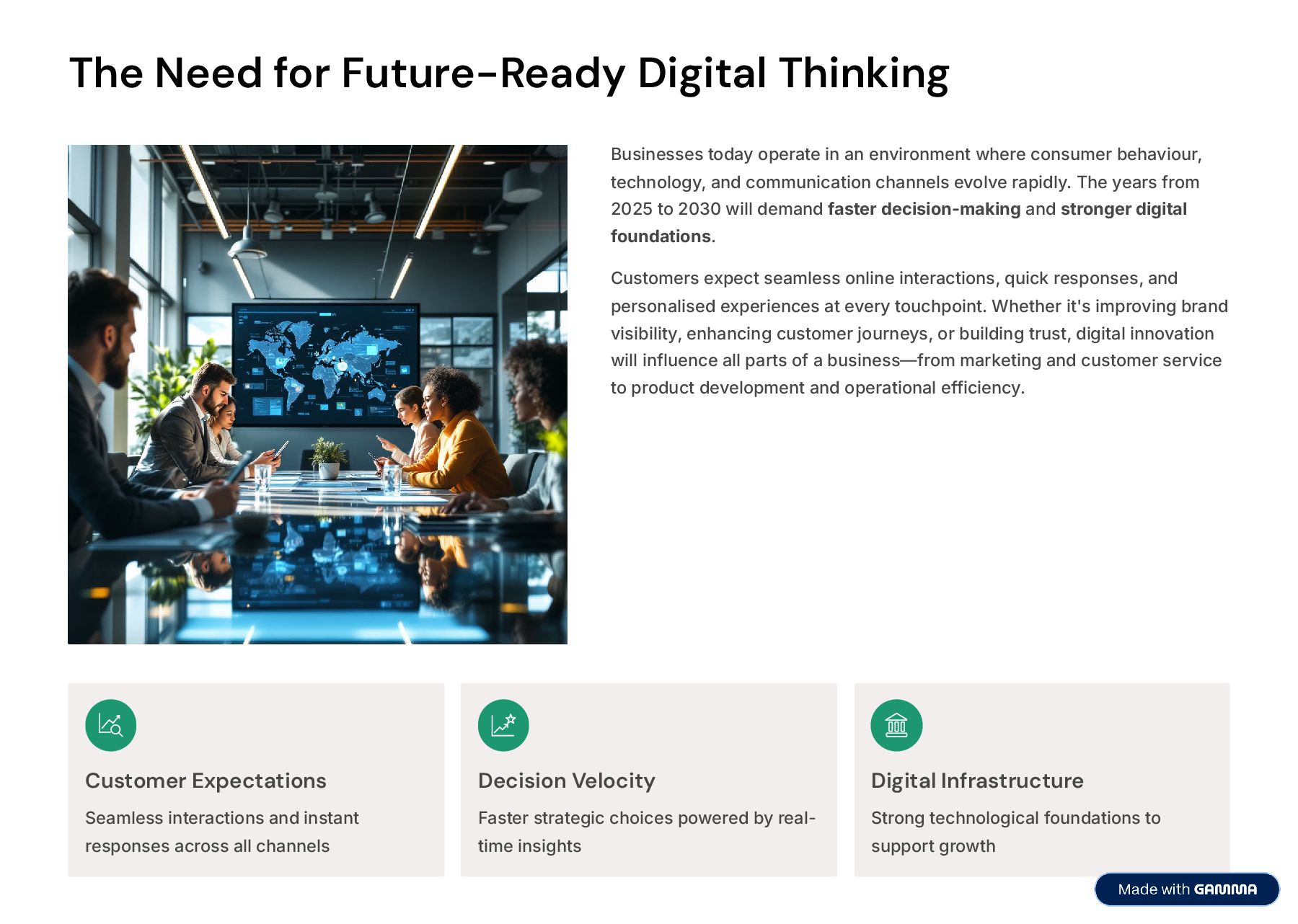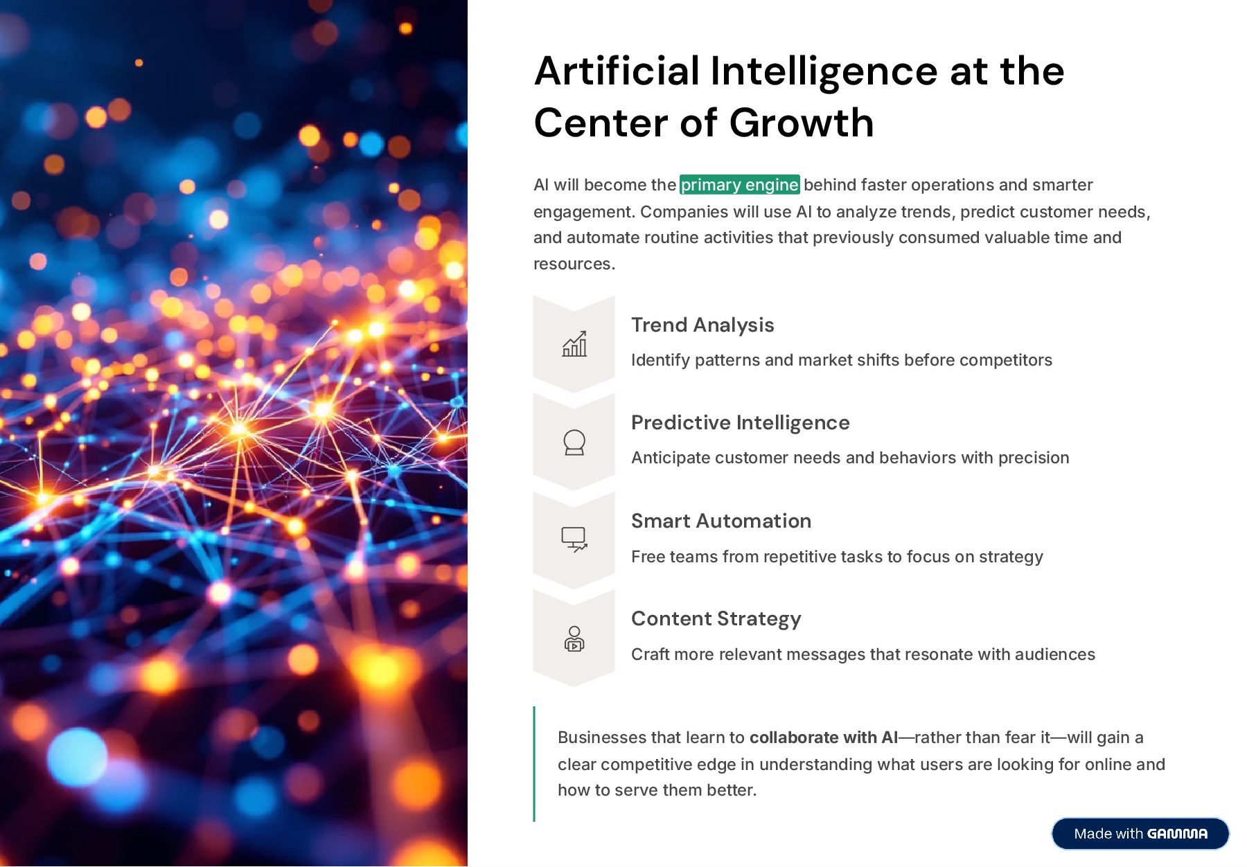 A forward-looking exploration of the emerging technologies, shifting consumer behaviors, and digital transformations that will shape business growth over the next five years. This presentation highlights how companies can strengthen their digital foundations, improve customer experiences, and stay ahead in a rapidly evolving digital landscape.