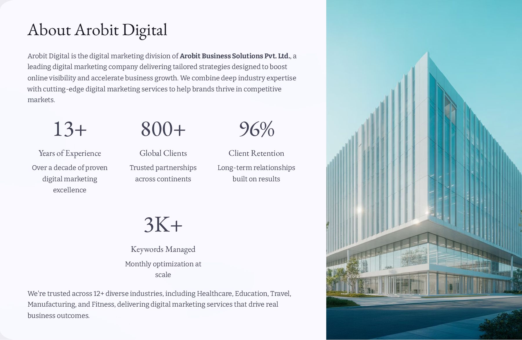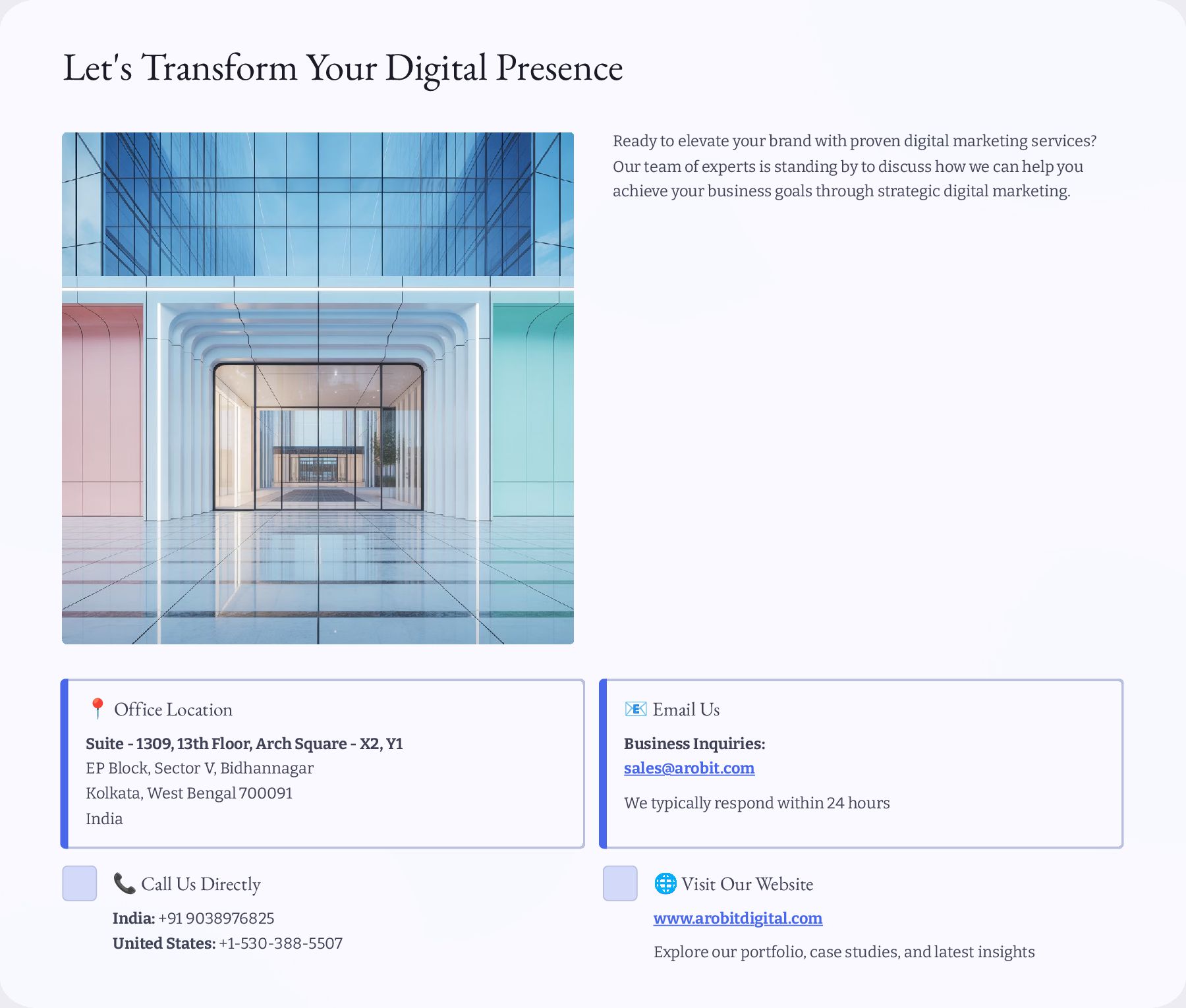 At Arobit Digital, we’re more than just a digital marketing company — we’re your growth partners in the online world. This presentation showcases how our personalized digital marketing services combine creativity, data, and strategy to help brands connect deeply with their audiences, build trust, and achieve real, measurable success.