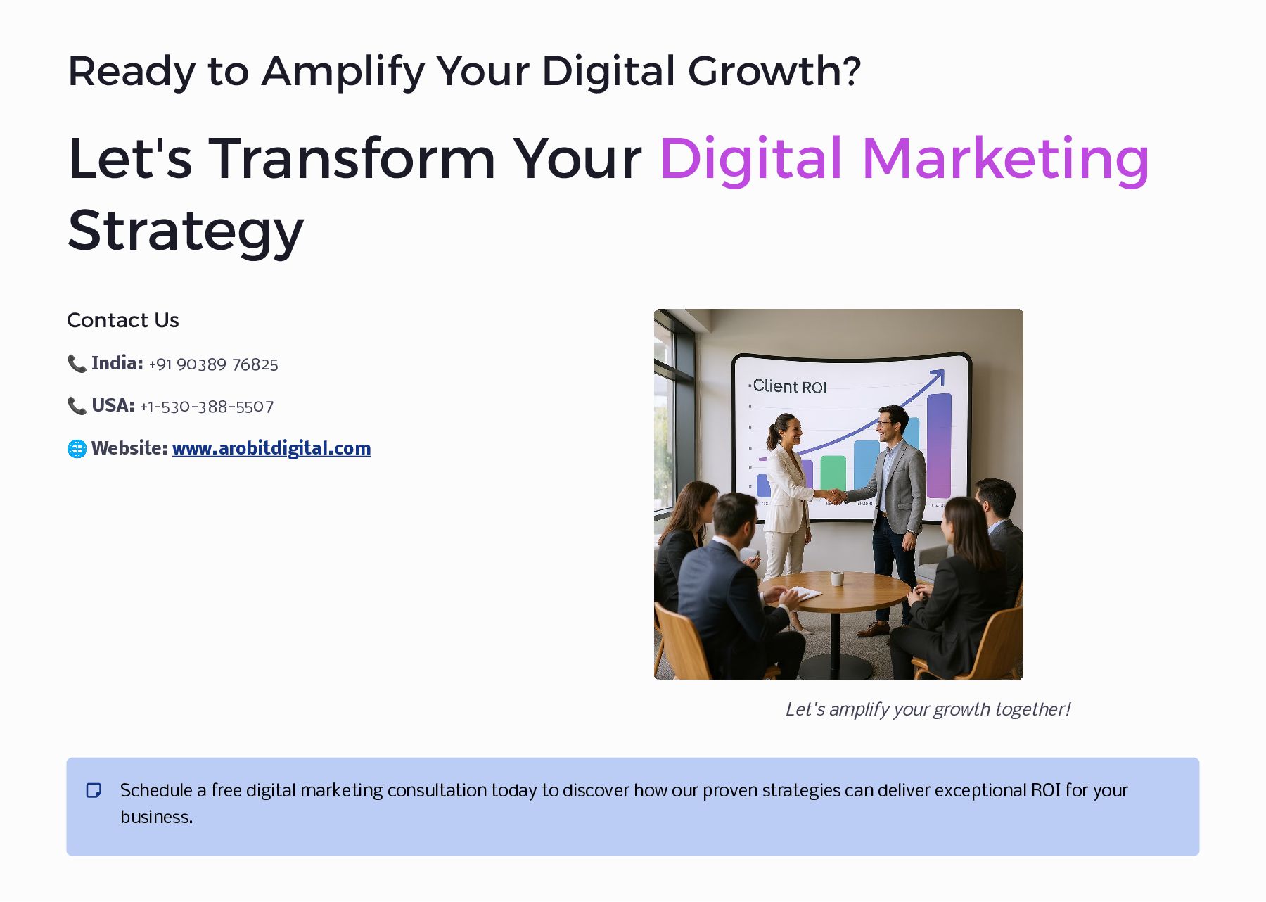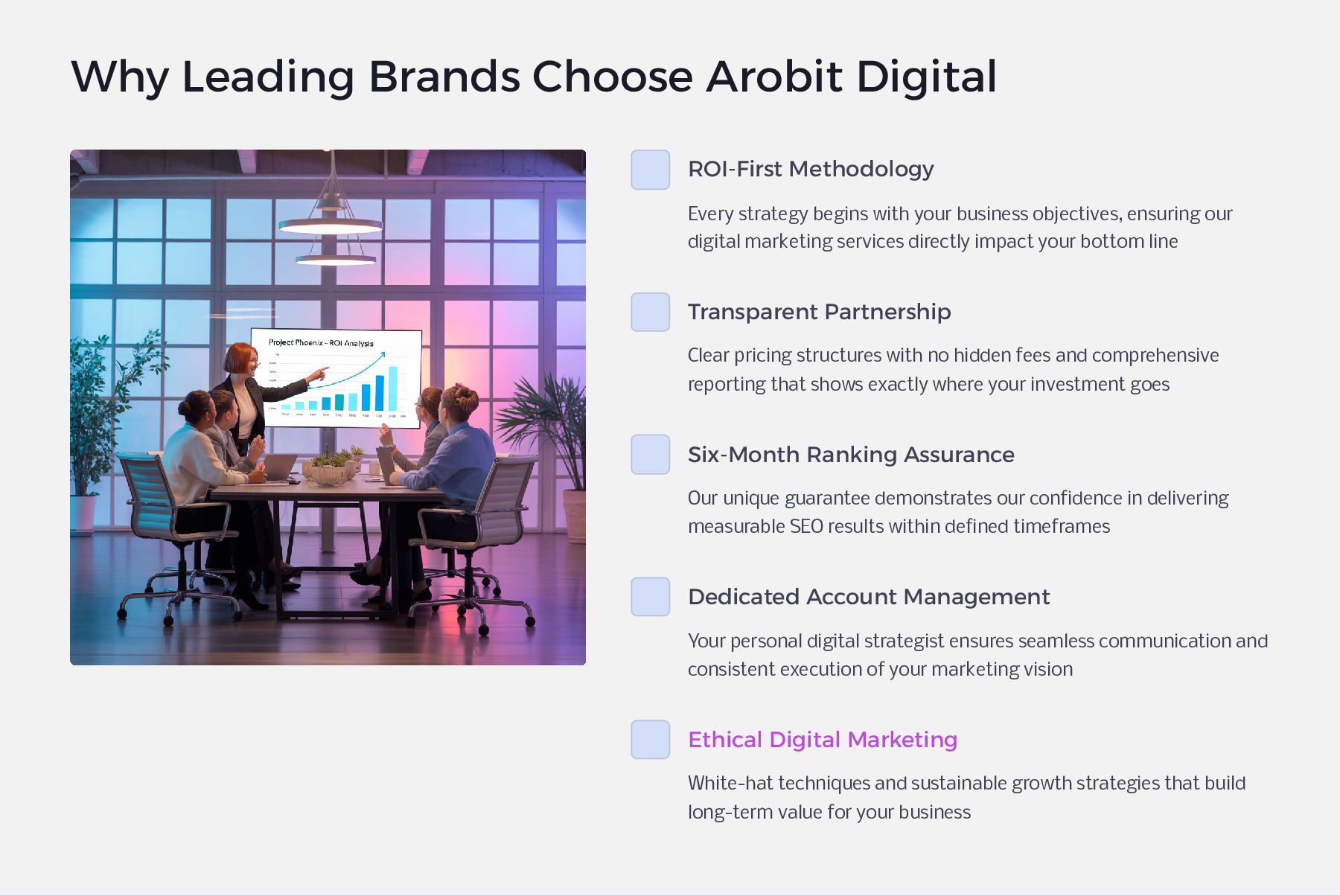 Arobit Digital stands as a leading digital marketing company, delivering a full range of digital marketing services designed to enhance brand visibility, engagement, and return on investment. Our expert strategies include SEO, PPC advertising, social media campaigns, and content marketing to deliver measurable growth. With years of experience, advanced tools, and a client-focused approach, Arobit Digital empowers businesses to achieve consistent success in today’s digital marketplace.