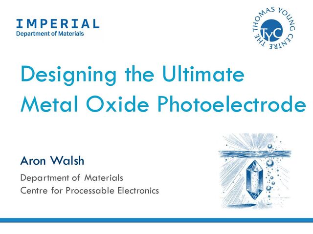 chemical principles for band engineering of metal oxides. Multi-component photoelectrodes offer potential to tailor performance The presentation contained work from: Kanta Ogawa, Lucas Garcia-Verga, Liam Harnett Thanks to my collaboration network, in particular: James Durrant (ICL) and Ernest Pastor (CNRS-Rennes)