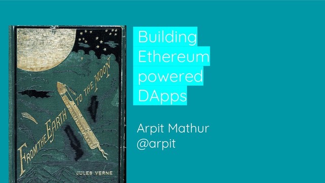 to /contracts directory • Compile contract: ◦ `truffle compile` • Run Ganache (local test net) • Deploy Contracts ◦ `truffle migrate` • Import Contract JavaScript stub in your clientside code ◦ import MyContract from '../../../build/contracts/MyContract.json' • Execute functions on Contract in JavaScript (at the right address)