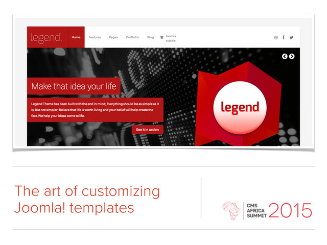 template • Identify the module positions and set them in templateDetails.xml • Define template layout • Add css/fonts/LESS • Add JS elements • Add content/images • Create overrides • Fine tune aesthetics • Test functionality & responsiveness
