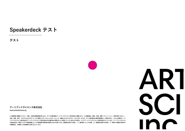 ΞʔτΞϯυαΠΤϯεגࣜձࣾɹ XXXBSUBOETDJFODFKQ ͜ͷఏҊॻʹܝࡌͷΠϥετɾࣸਅɾจষͷແஅసࡌΛې͡·͢ɻͯ͢ͷஶ࡞ݖΞʔτΞϯυαΠΤϯεגࣜձࣾʹؼଐ͠·͢ɻ͜ͷఏҊॻɺਤܗɺࣸਅɺөըʢΞχϝʔγϣϯɺ࣮ࣸΛ͍·ͤΜʣɺ จষɺԻָɺԻɺϓϩάϥϜͳͲͷσʔλʢҎԼ૯শͯ͠σʔλͱ͍͍·͢ʣʹΑͬͯɺߏ͞Ε͓ͯΓ·͕͢ɺ͜ΕΒͷσʔλʹɺͯ͢ஶ࡞ݖຢஶ࡞ྡݖͱ͍͏ݖར͕͋Γɺ͜ΕΒͷݖརɺΞʔ τΞϯυαΠΤϯεגࣜձ͕ࣾΞʔτΞϯυαΠΤϯεגࣜձࣾҎ֎ͷݖརऀͷঝೝͷͱʹ༻͍ͯ͠ΔҰ෦ͷͷΛআ͖ɺͯ͢ΞʔτΞϯυαΠΤϯεגࣜձ͕͍ࣾͬͯ·͢ɻΞʔτΞϯυαΠΤϯ εגࣜձࣾɺྨࣅΞΠσΞྨࣅఏҊʹΑͬͯຊఏҊॻͷஶ࡞ݖ͕৵͞ΕΔͷΛ͙ͨΊɺఏҊॻΛି༩͢Δࡍʹɺ̍ʣஶ࡞ݖʹ͍ͭͯͷ߹ҙɹ̎ʣఏҊॻͷฦ٫ͷ͓ଋɹ̏ʣແஅͰͷഁغ෦֎ऀ ͷӾཡېࢭɹΛ֬ೝͯ͠ຊఏҊॻΛ͓ି͠ग़͍ͯ͠·͢ɻ 4QFBLFSEFDLςετ ςετ