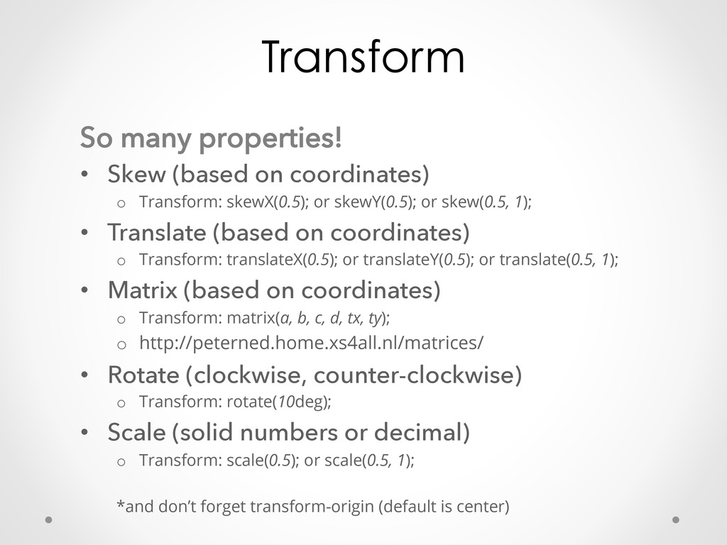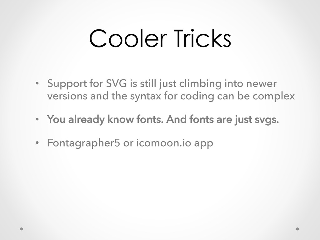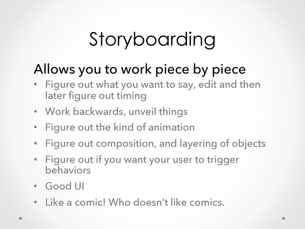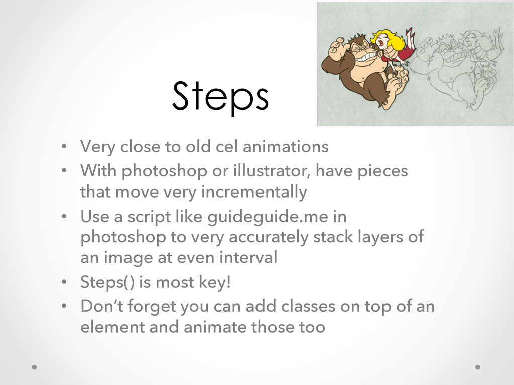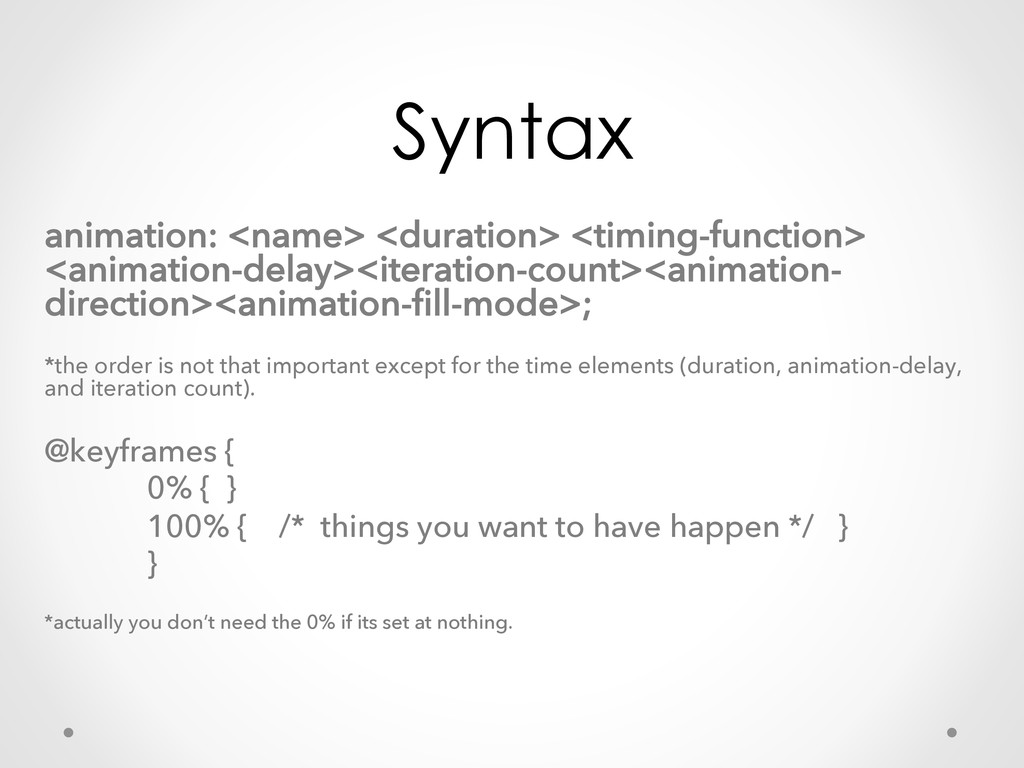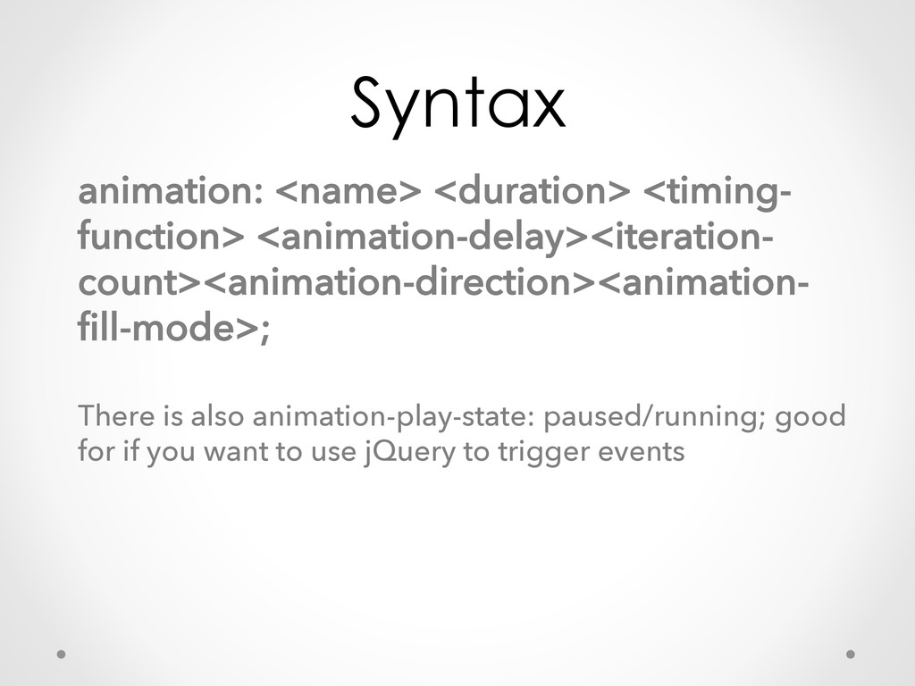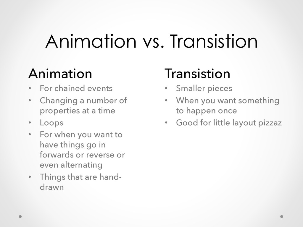 Using advanced techniques, we will be constructing engaging CSS animations with very little to no jQuery. Through the creation of scalable graphics we will emphasize using the smallest amount of code for maximum impact and show when it is appropriate to use transitions versus animations and even how to combine them. We will look at current support for techniques across browsers, and spacial depth with foreground, middleground, and background. We will also be discussing the use of storyboarding to work out ideas to cut down on editing time and the composition of a nuanced character, even if the character is a concept.