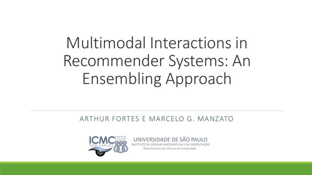 the number of returned items increases while Precision has the opposite effect • MAP only considers the relevant items and their positions in the ranking • In Precision the order of items is irrelevant, the more items are filtered to the user, the more false positives may also be returned • Explicit feedback achieved the worst results using matrix factorization. • Using the proposed ensemble algorithm, we achieved better results than the baselines MULTIMODAL INTERACTIONS IN RECOMMENDER SYSTEMS: AN ENSEMBLING APPROACH 19