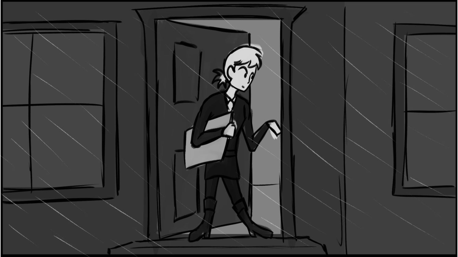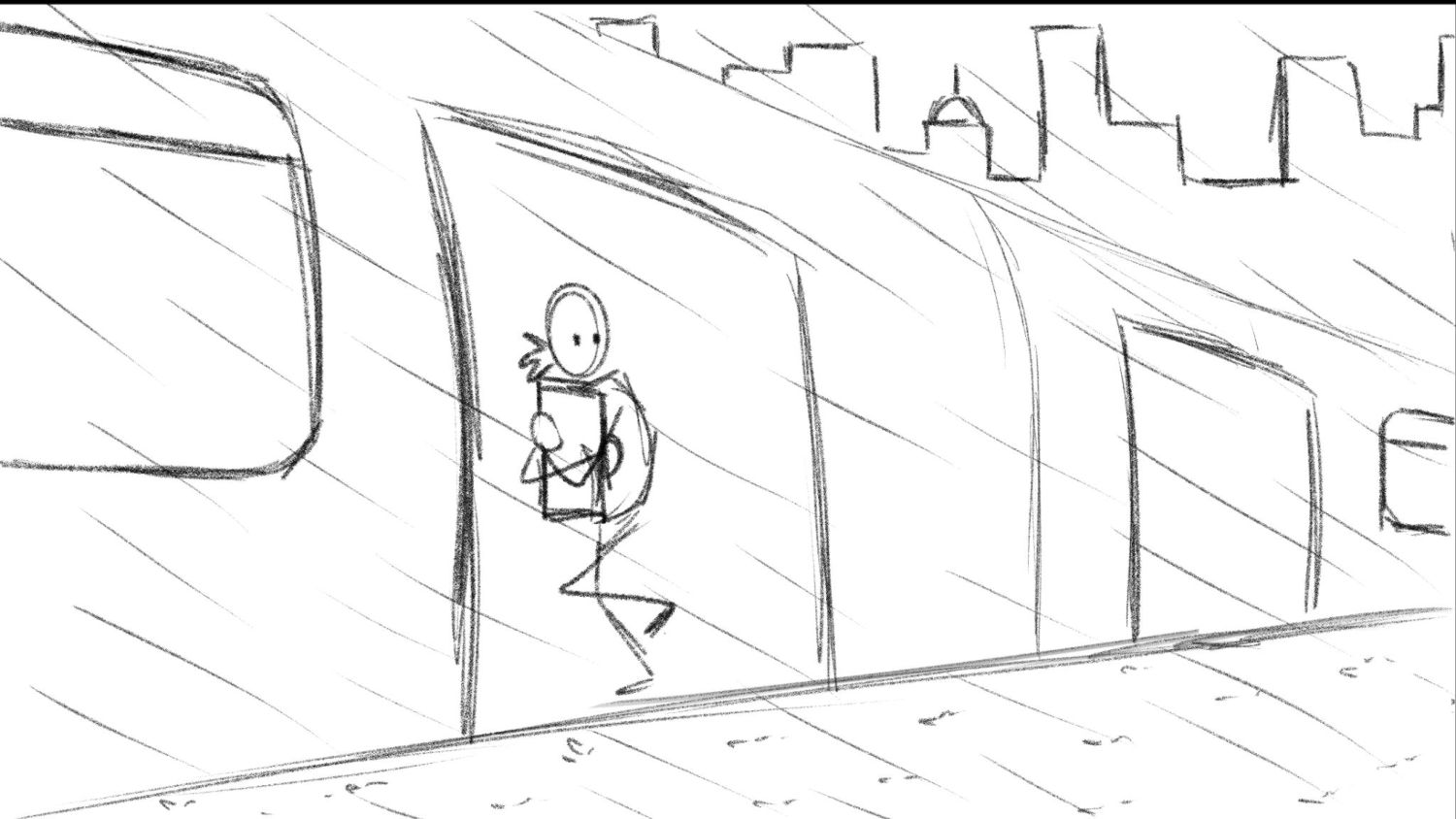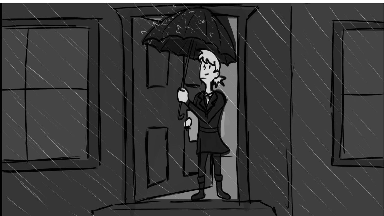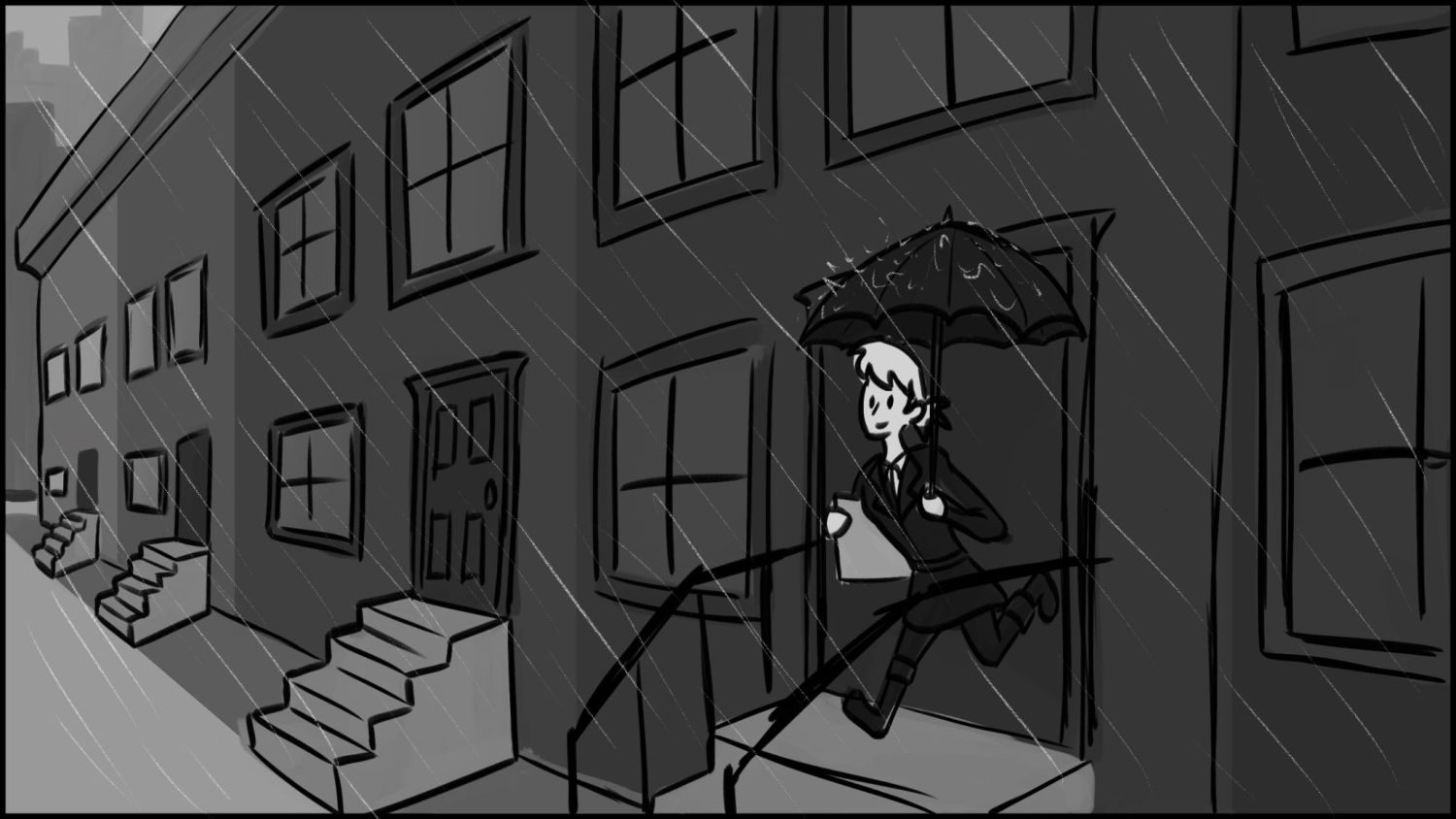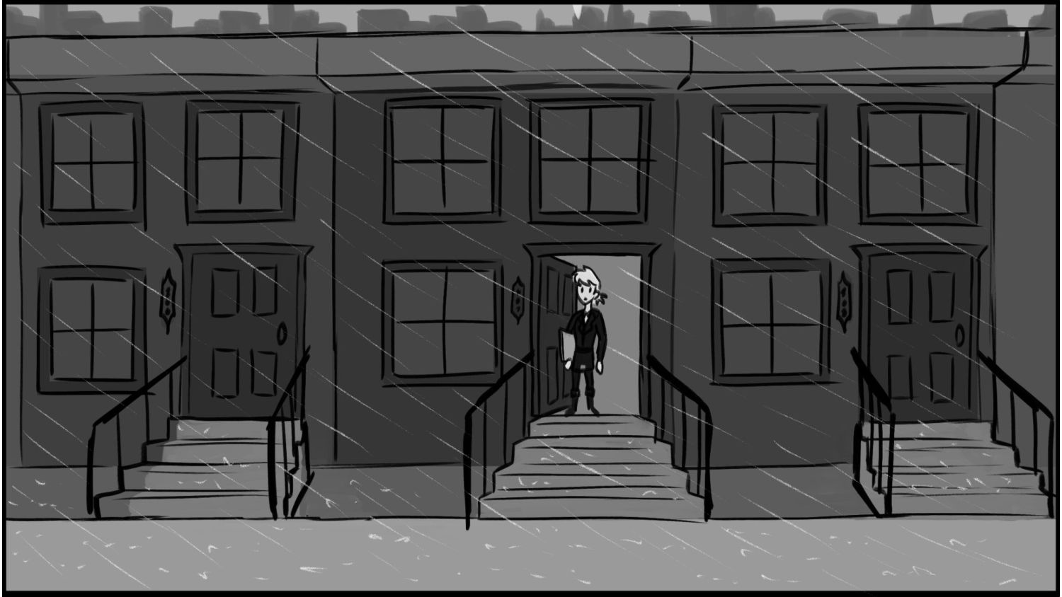 A business woman needs to make it to work on time to show off her new presentation. This is the big break for her, and she cant let anything go wrong. All she had to do was take it to work. But as she steps outside. She notices that it is pouring down rain! She has to get to work without letting her presentation be ruined by the water.