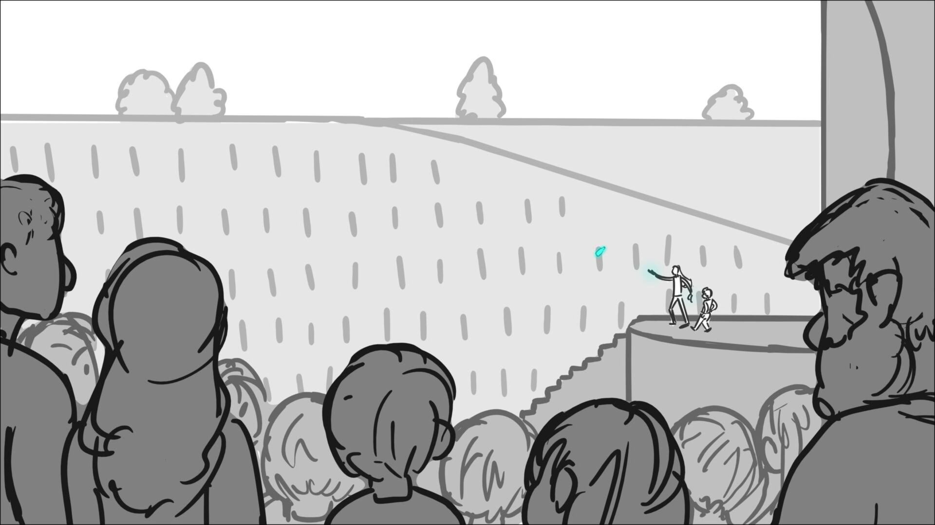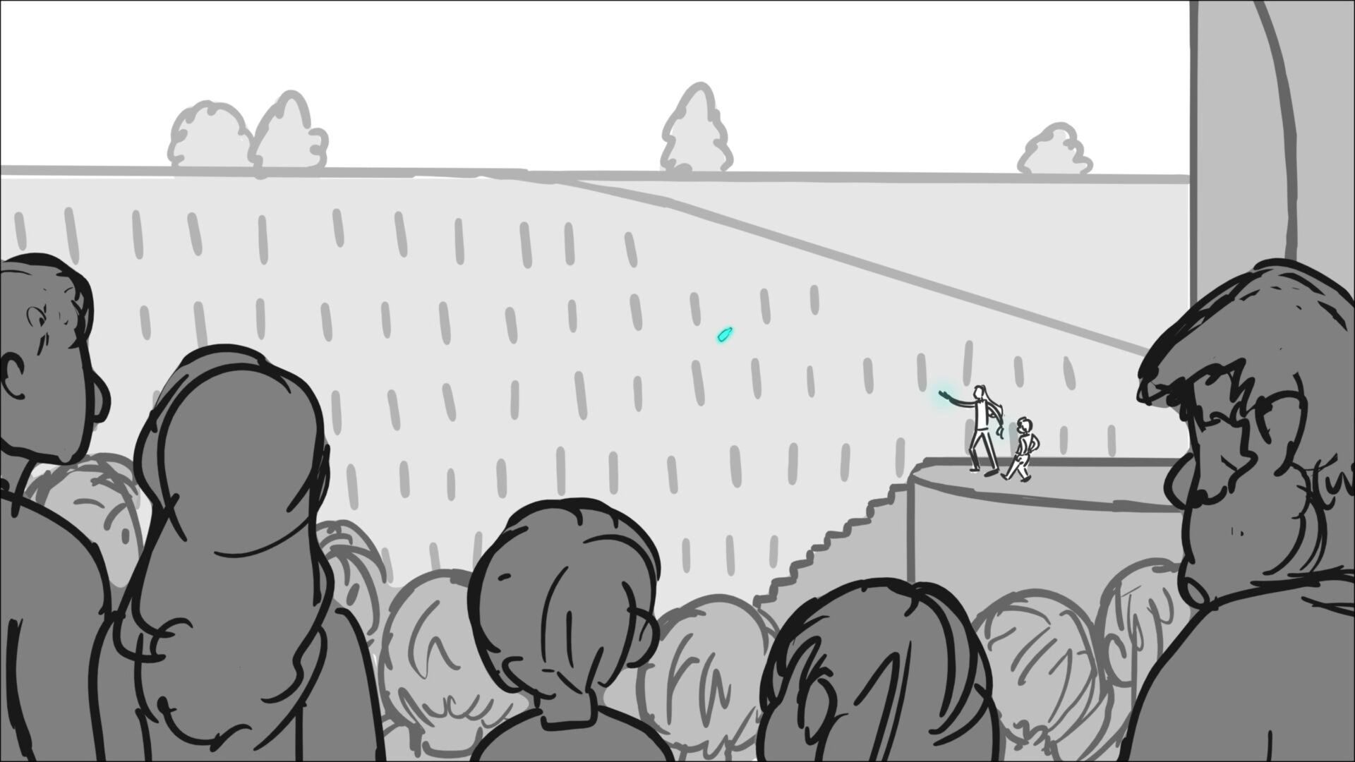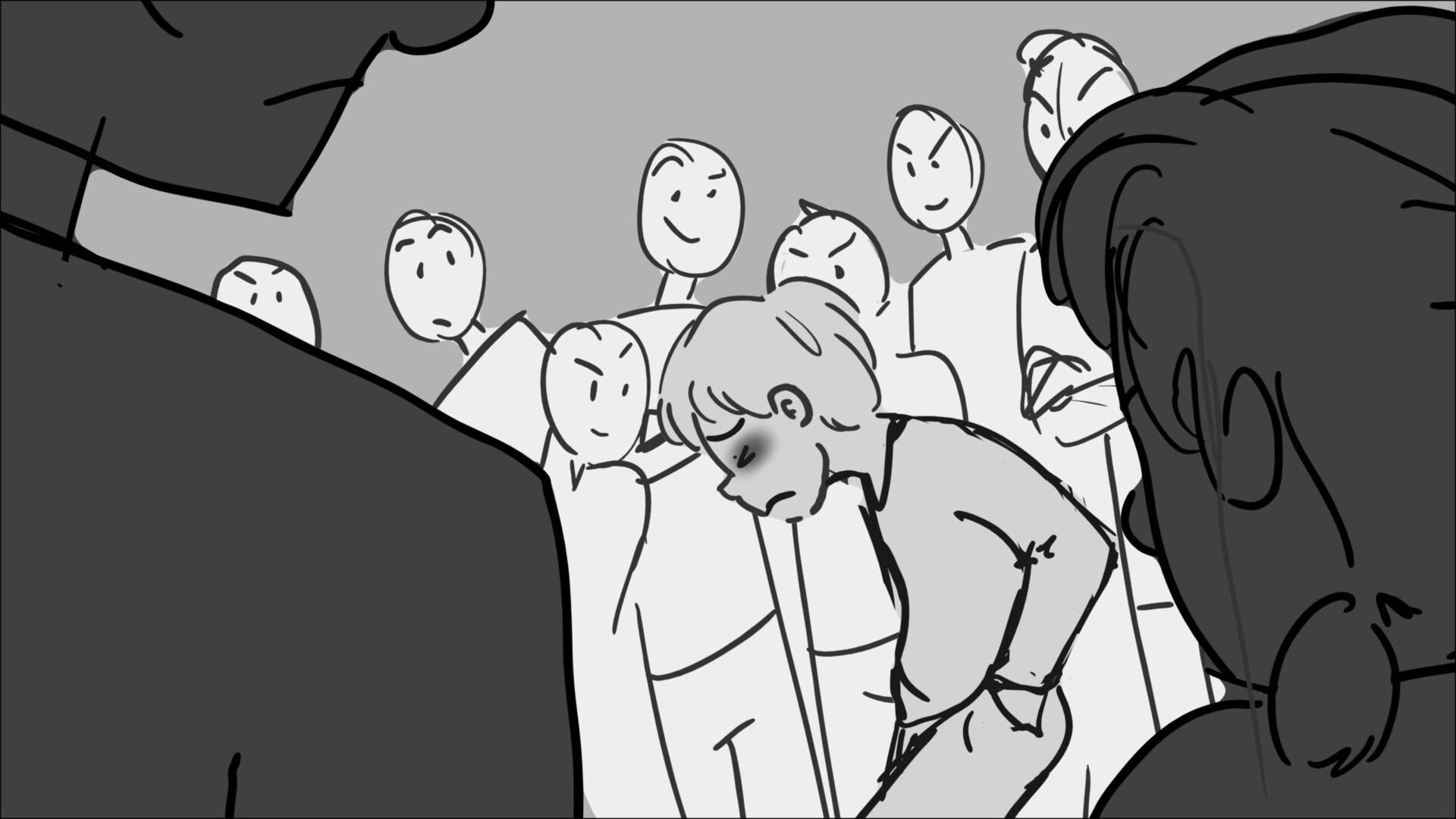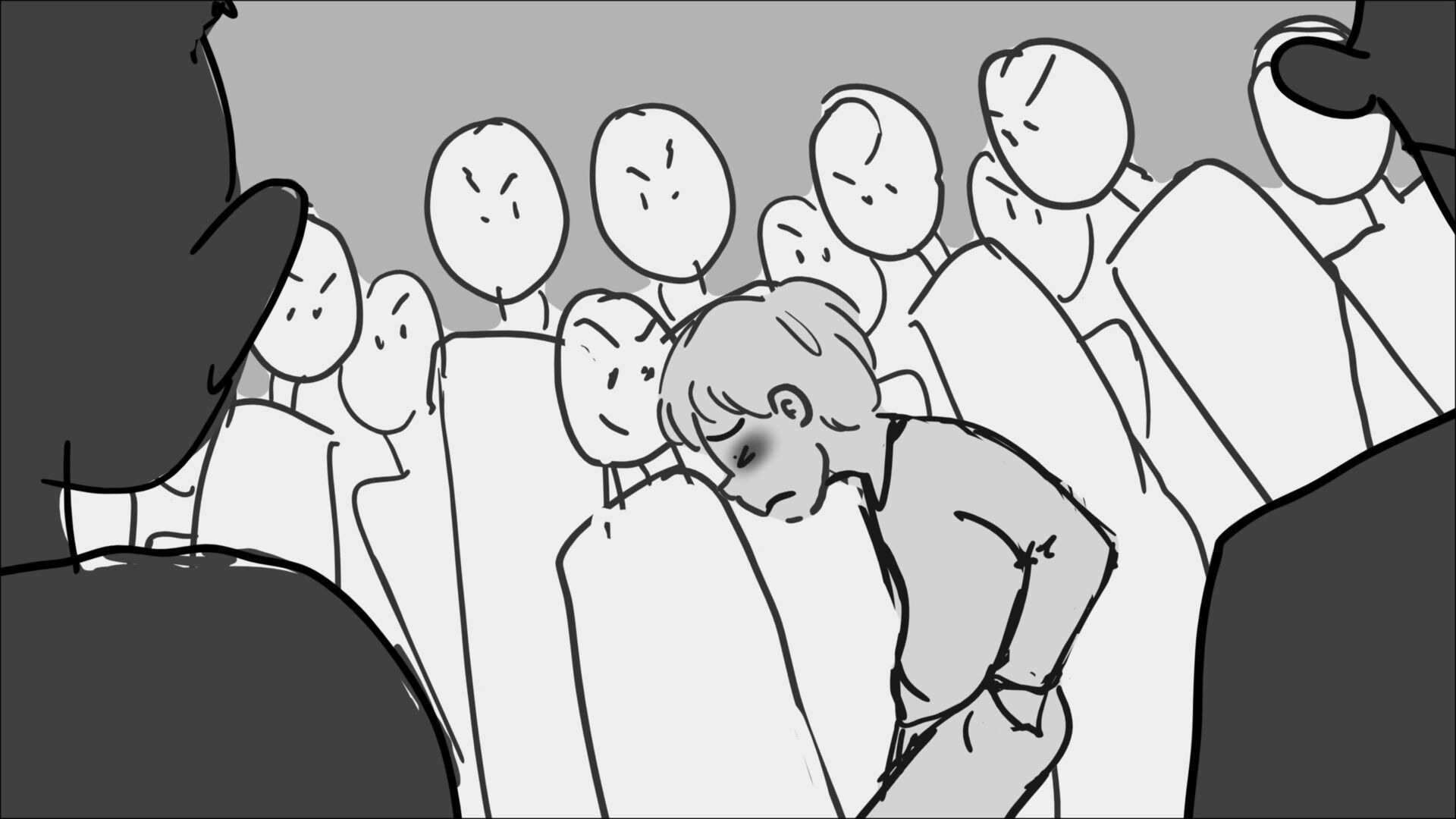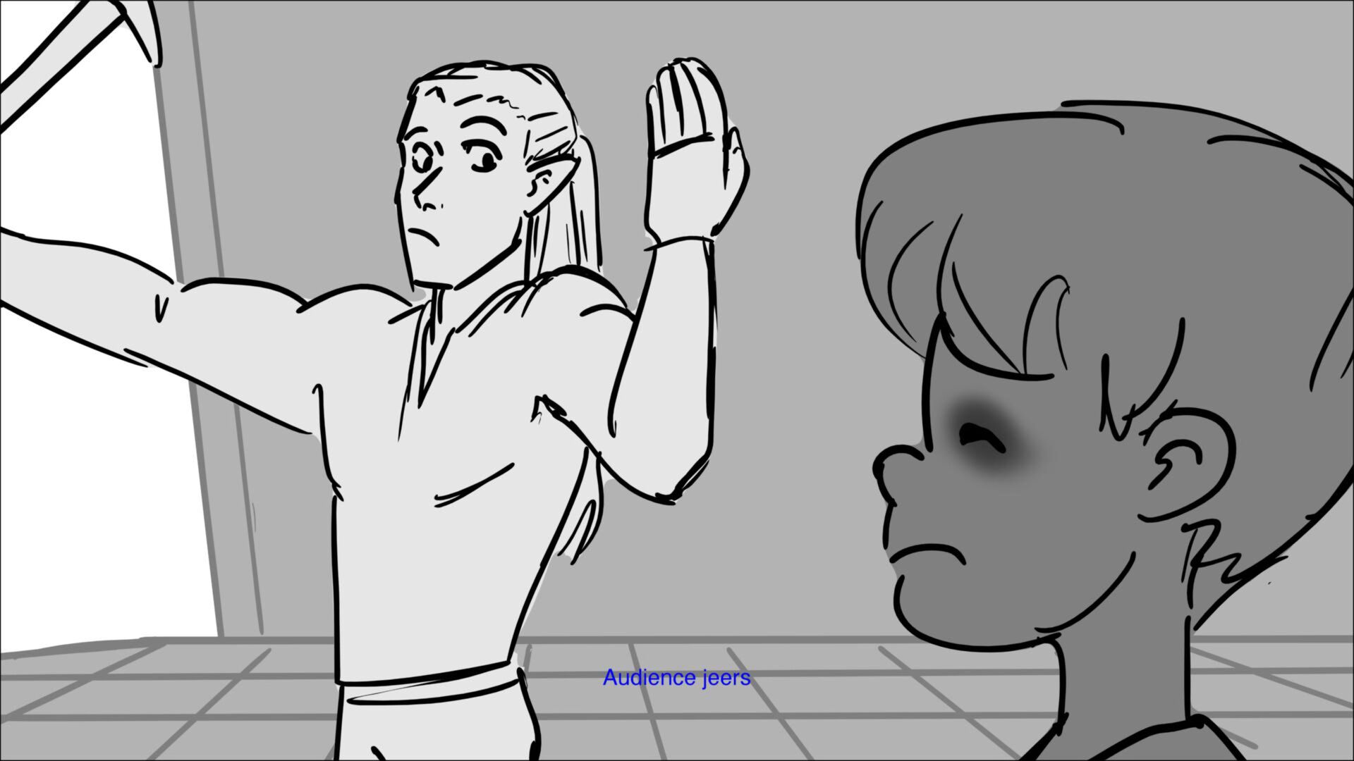 This sequence would be part of a feature movie. For context: in a magical world where a “little boy” with a pure heart is greatly bullied by his peers, an opportunity comes for him to shine and discover his inner strength.