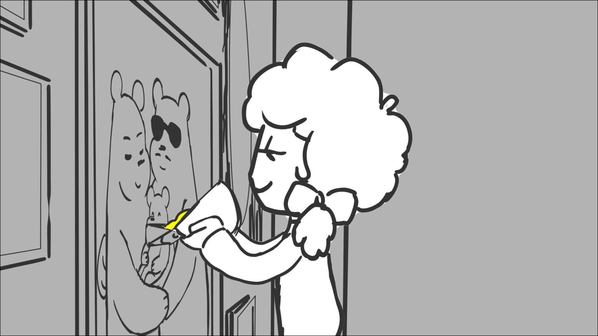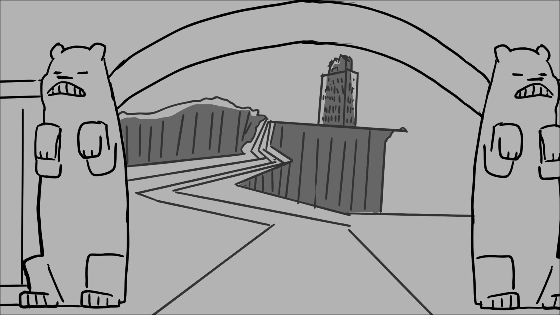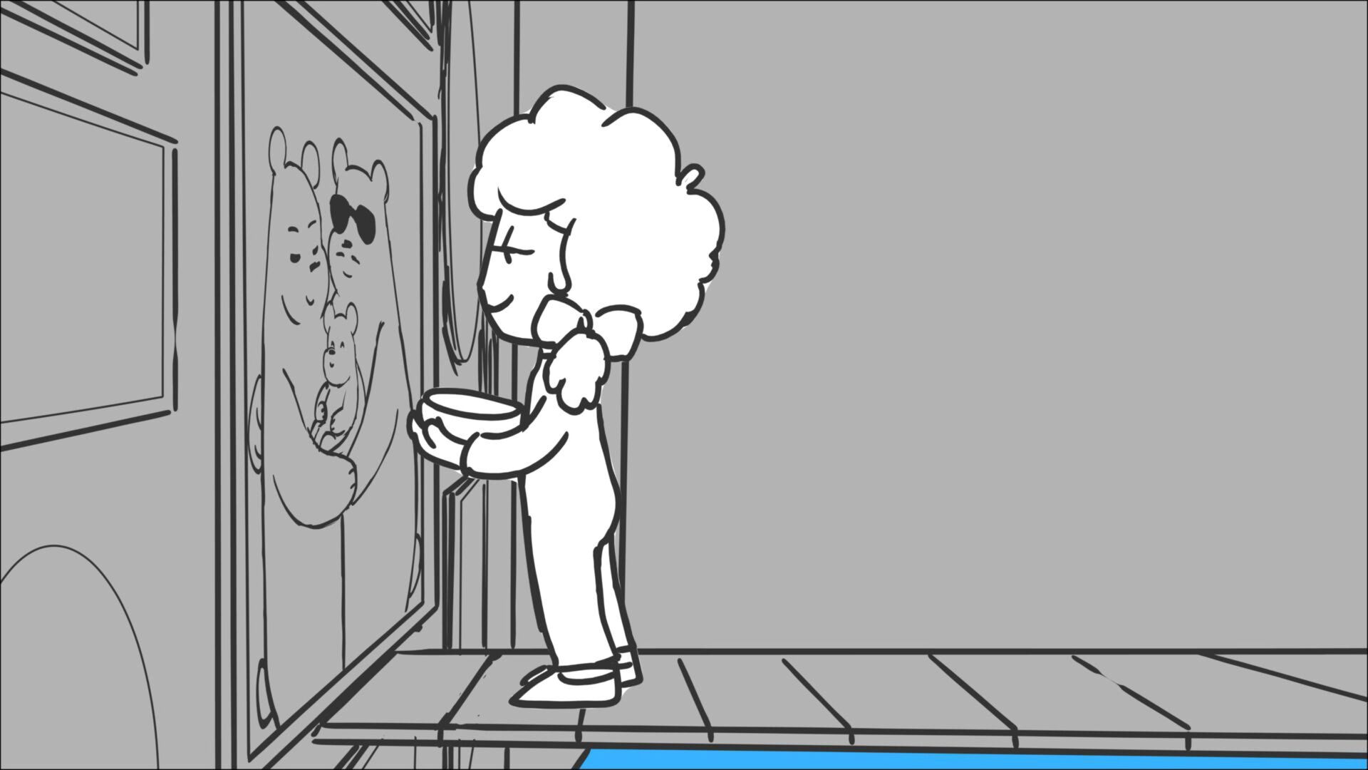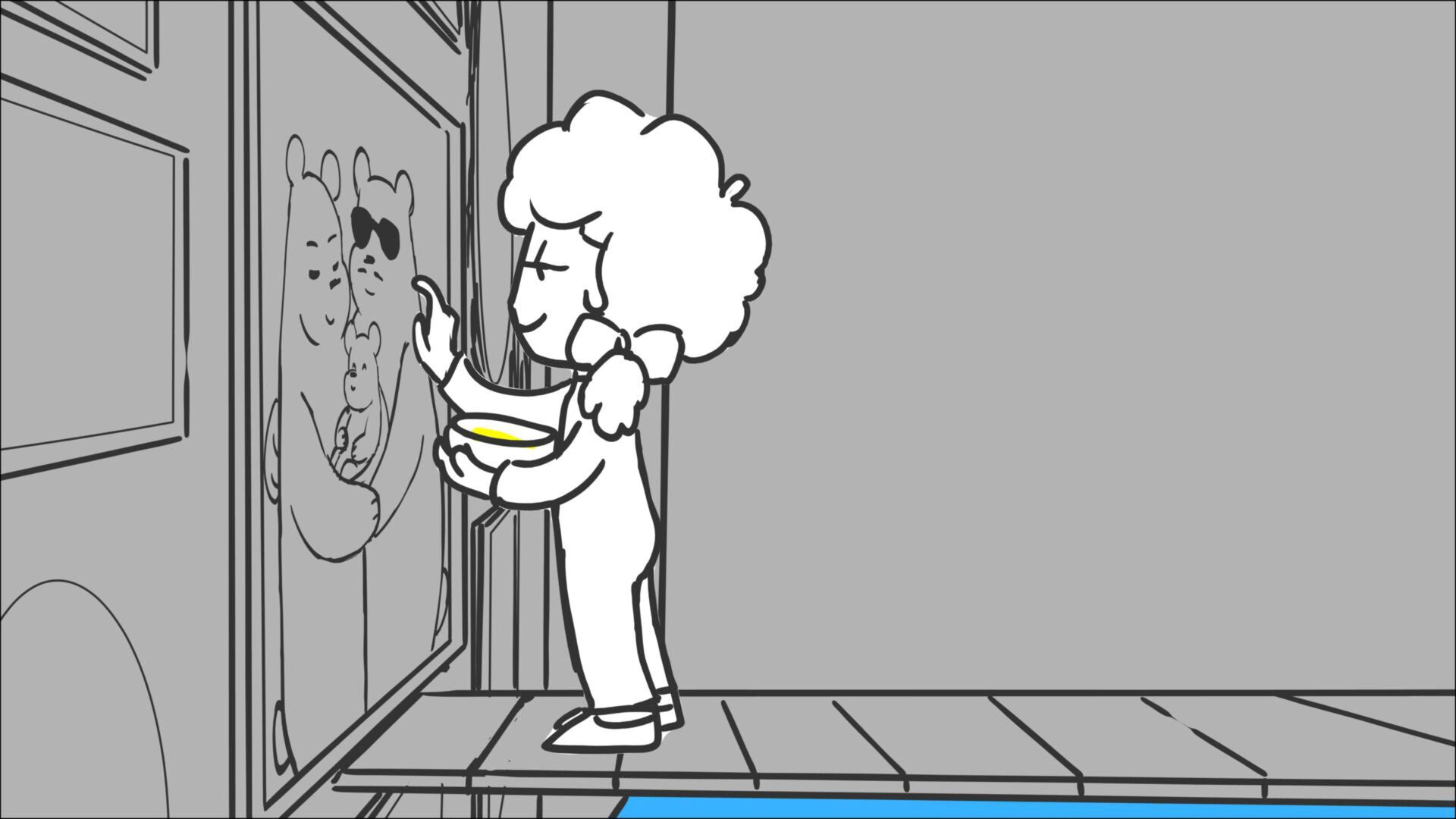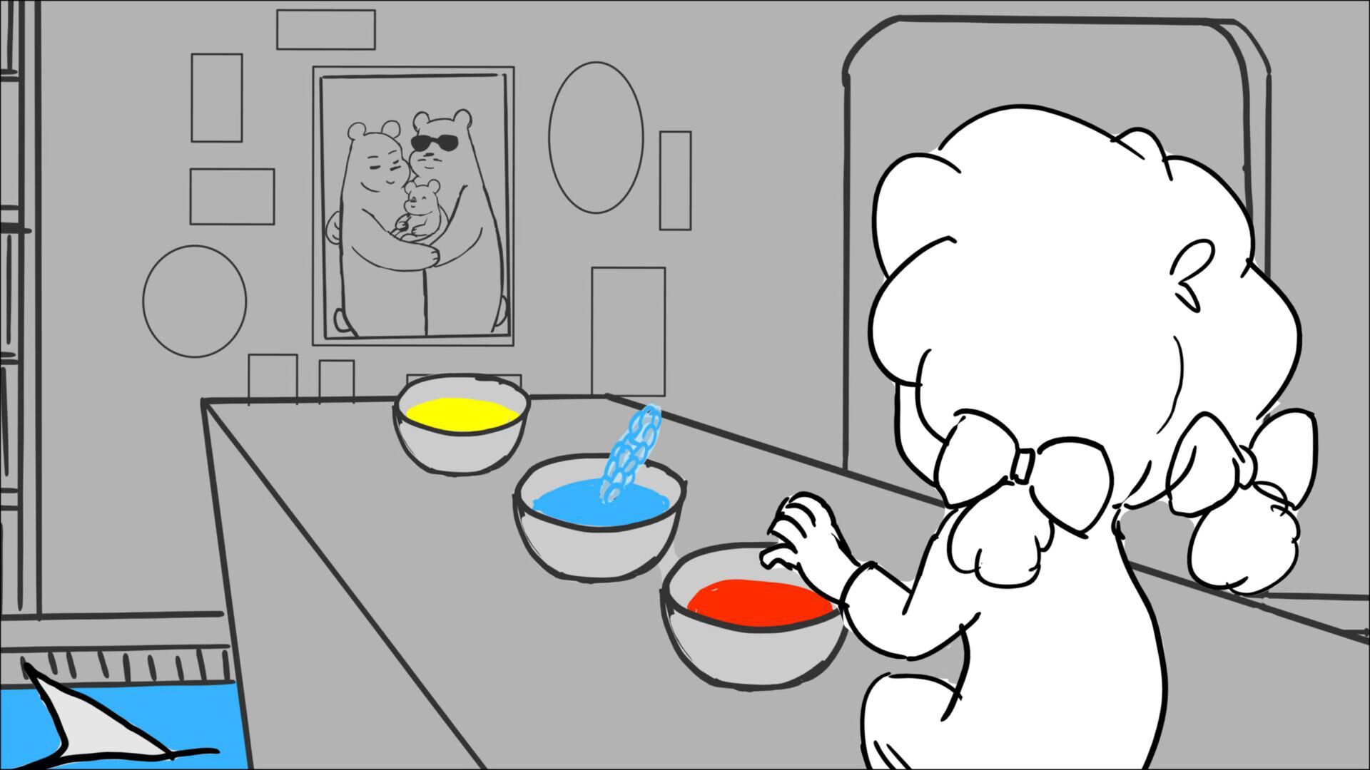 This sequence I had challenged myself to do in 3.5 weeks between November and December, playing around with a more simplified, silly style suited for television. For context: Goldilocks is a seasoned secret agent in a world that is something like “Spy Kids” meets “Shrek.” The Three Bears a crime family that have gotten their paws on a glowing McGuffin, and it’s Goldilock’s job to acquire the goods!